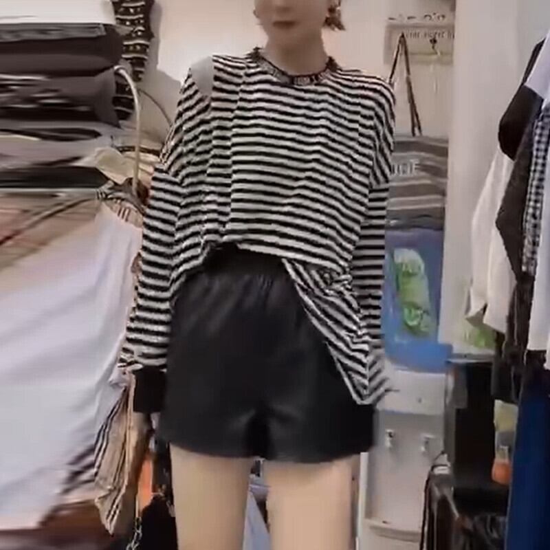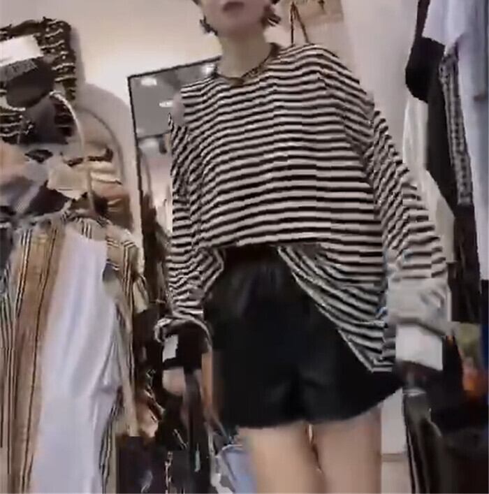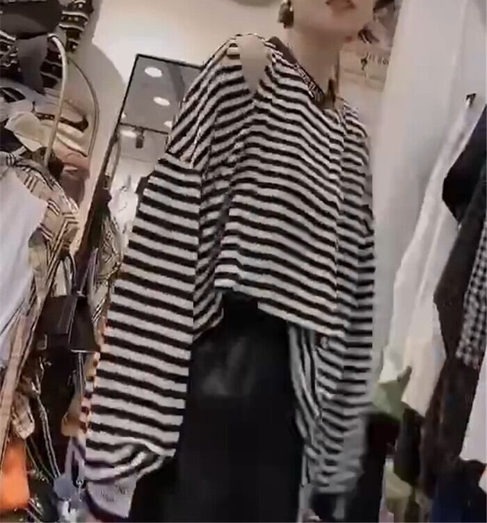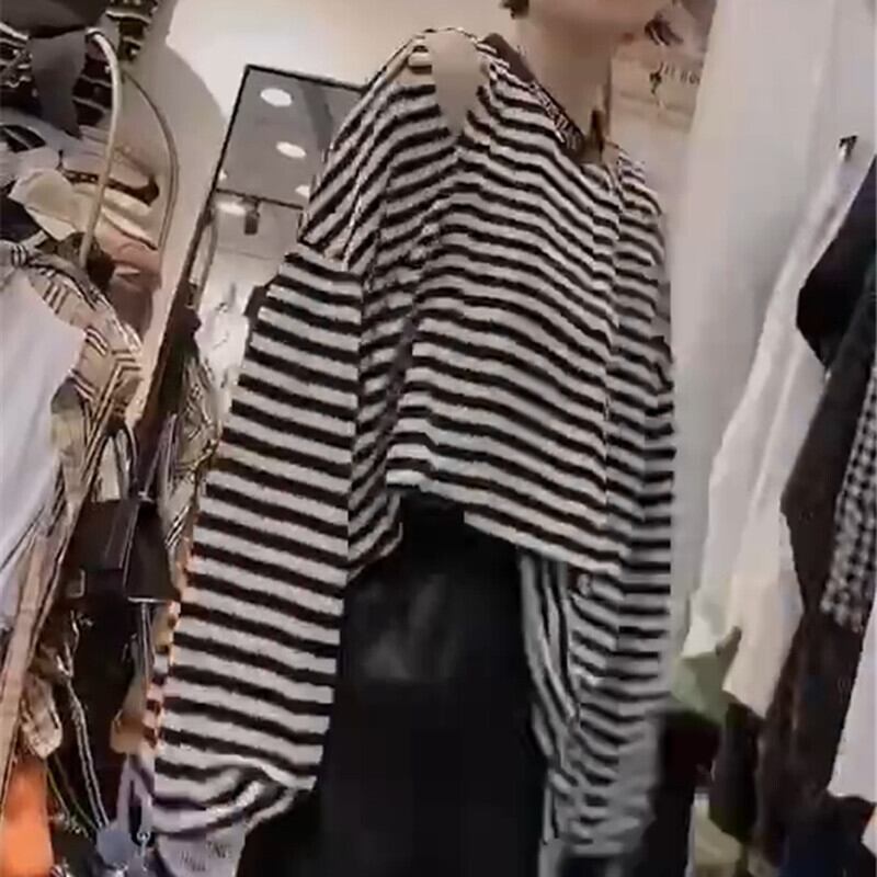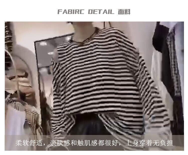 ラウンドネックTシャツ ルーズ薄手ストライプトップス ロング 大きめサイズ Oネック ミックスインファッション64918844251