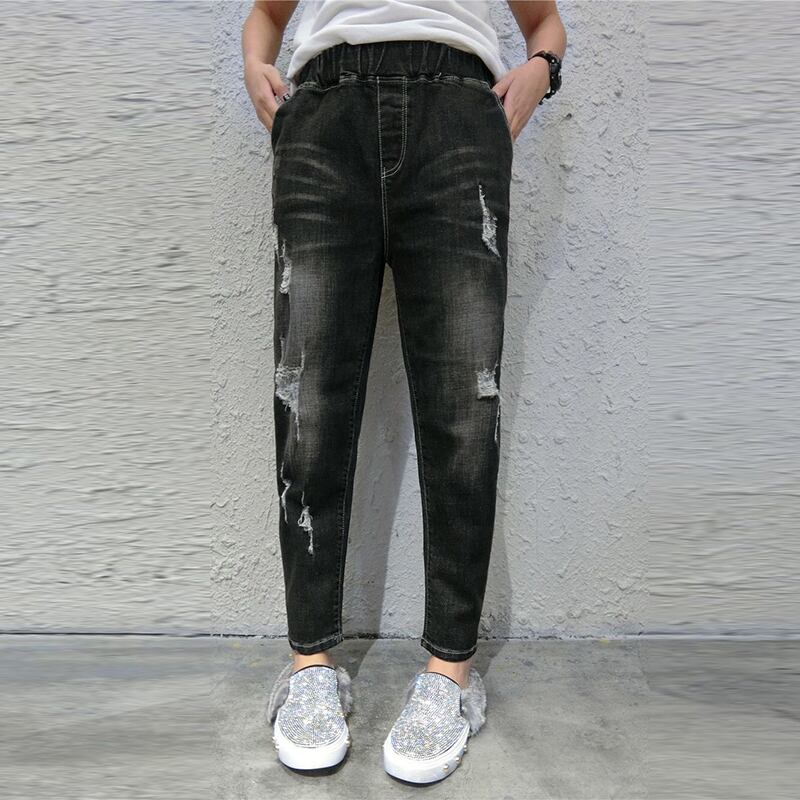 ハイウェストウェストジーンズ パンツ ルーズ薄手 大きめサイズ ミックスインファッション82888072751