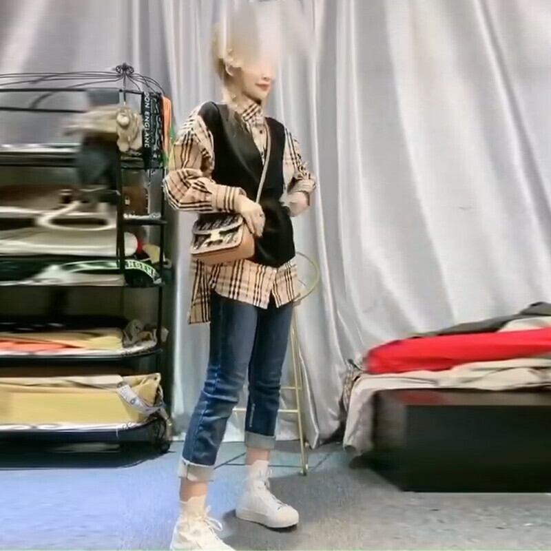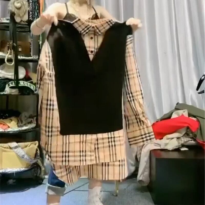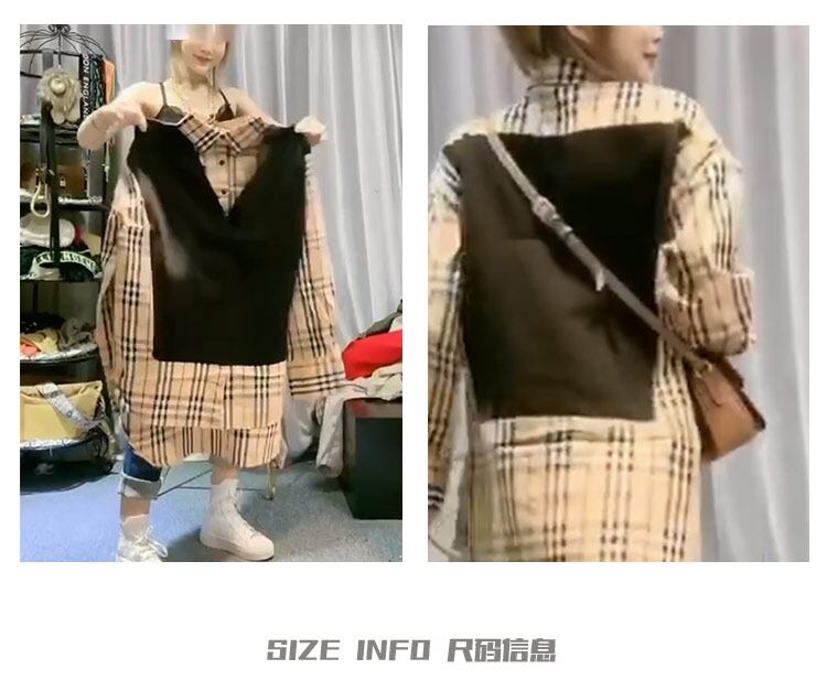 オータム格子柄シャツ ツーピース薄手トップス 大きめサイズ 秋物 ミックスインファッション63000464542