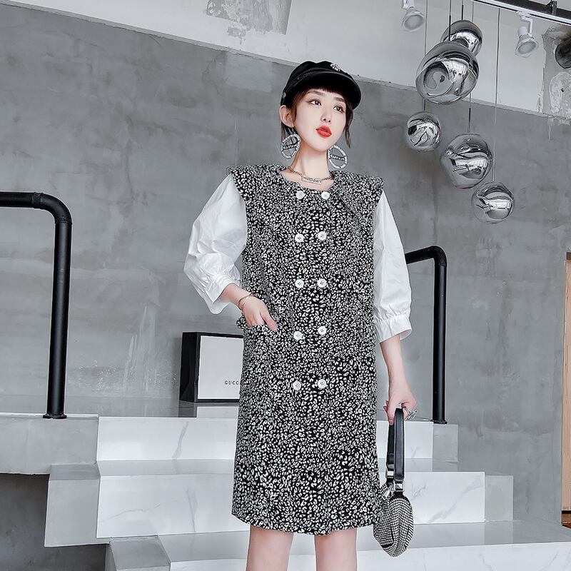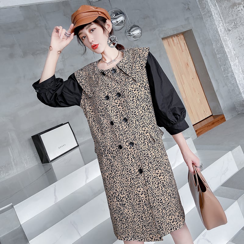 オータムルーズ薄手レオパードプリント柄ドレス 大きめサイズ 秋物 スカート ミックスインファッション24056008316