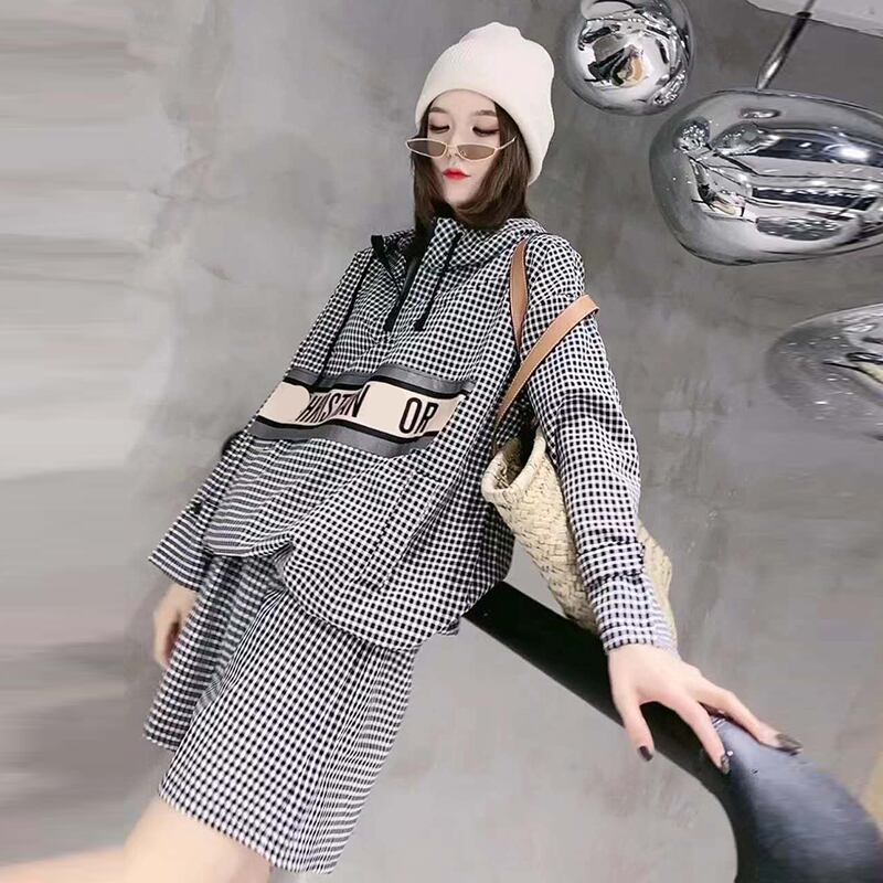 オータムウィンターフードトップス ルーズ格子柄ショーツ 秋物 冬物 ブルマー ミックスインファッション73772675246