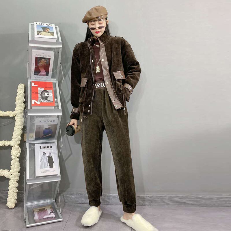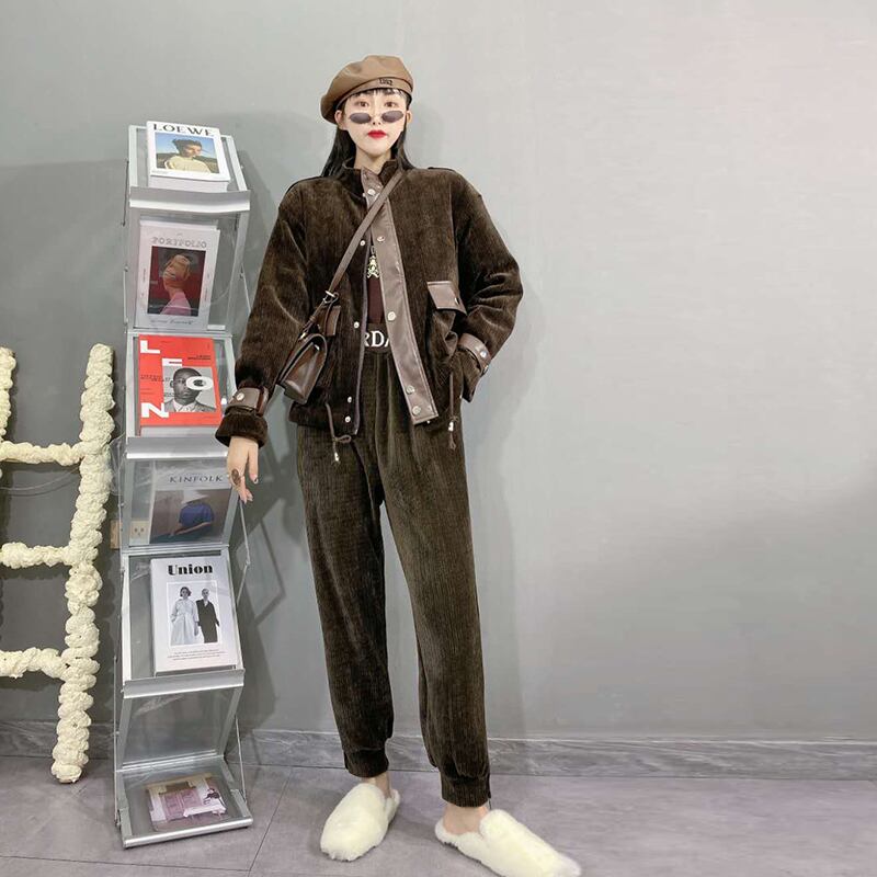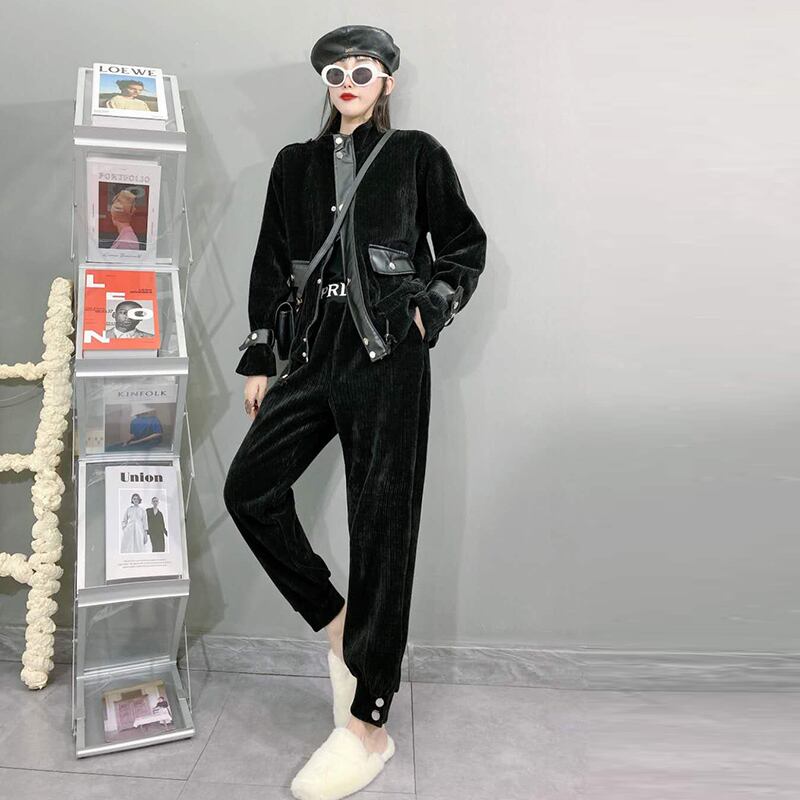 オータムウィンターベルベットジャケット パンツ ストリート 大きめサイズ 秋物 冬物 ミックスインファッション98577181781