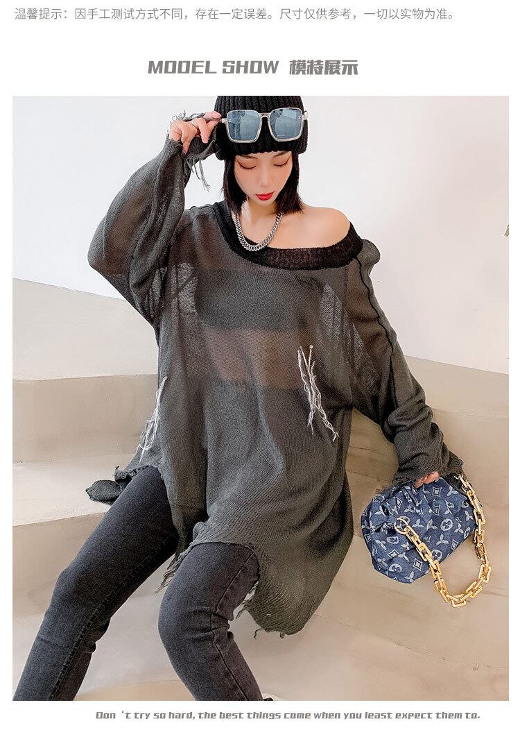 オータムニットセーター 薄手トップス ルーズ ロング 大きめサイズ 秋物 ミックスインファッション31899381533
