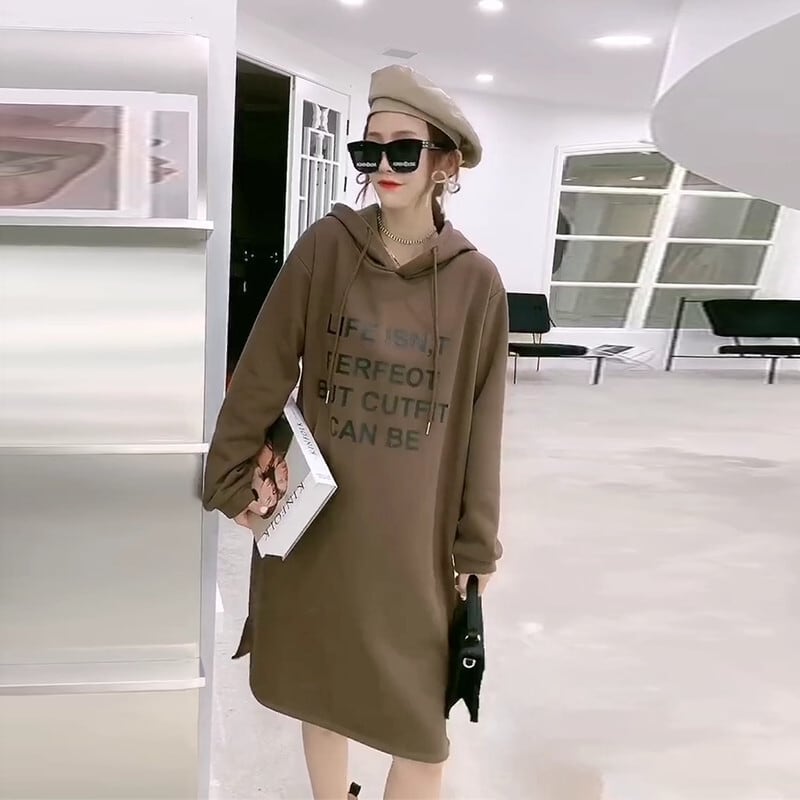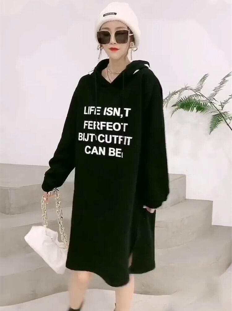 オータムウィンタードレス 薄手フードセーター スタイル 大きめサイズ 秋物 冬物 ミックスインファッション26578381799