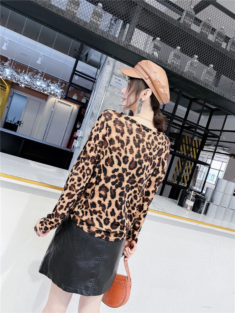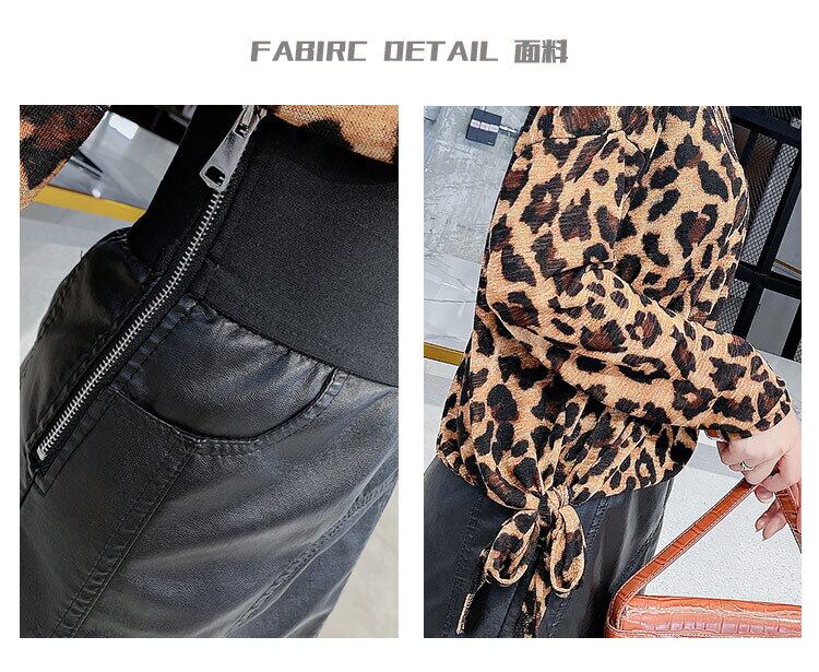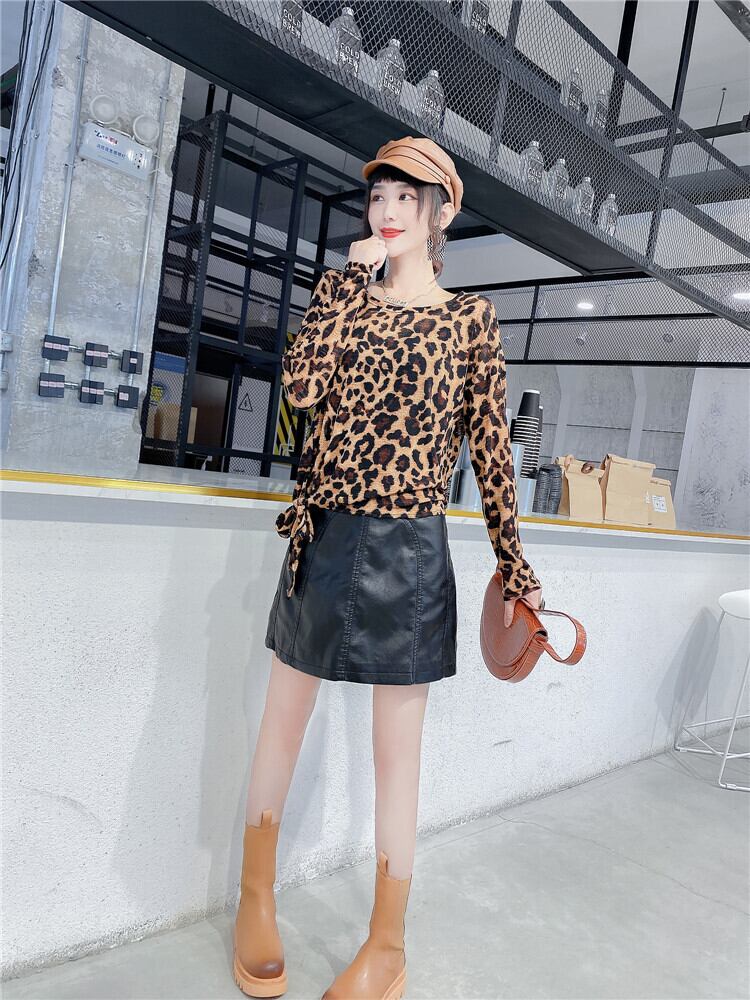 レオパードプリント柄Tシャツ ロングレザースカート 大きめサイズ オータム 秋物 ミックスインファッション66431690283