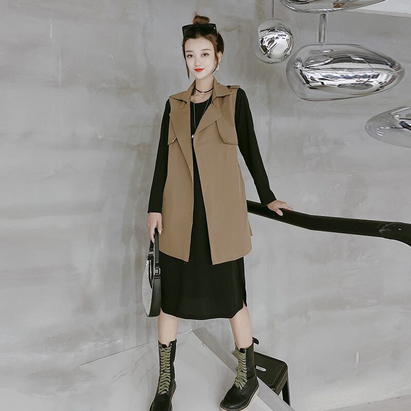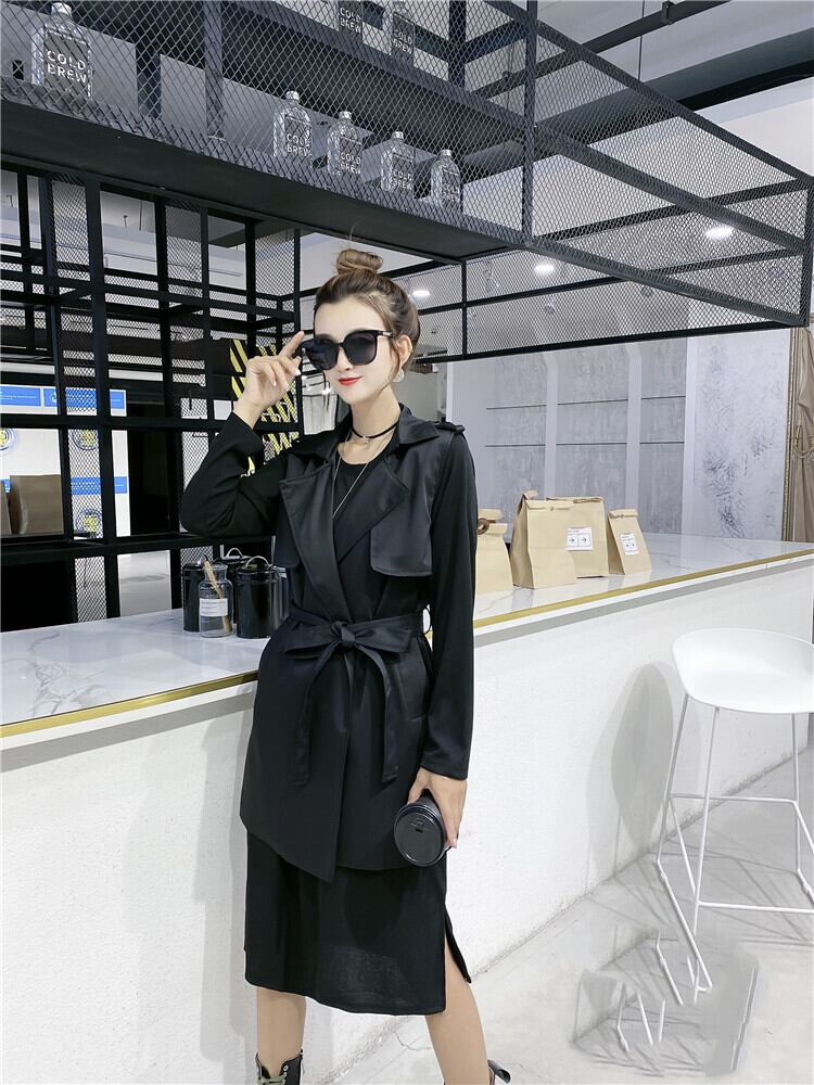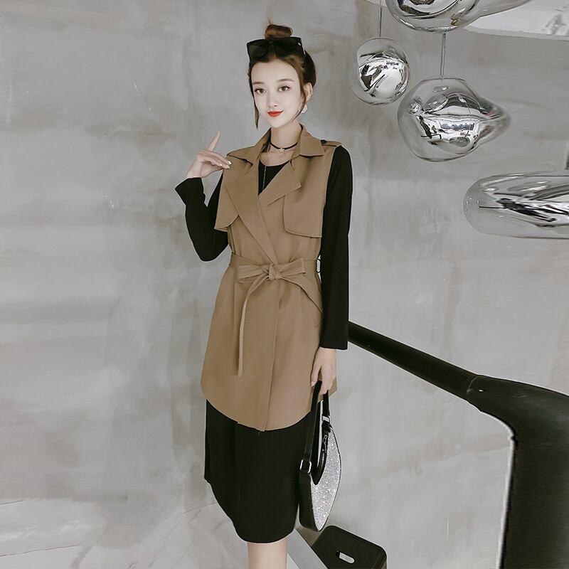 色:黒のツーピース,カーキベストブラックドレスツーピーススーツ