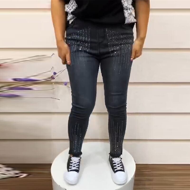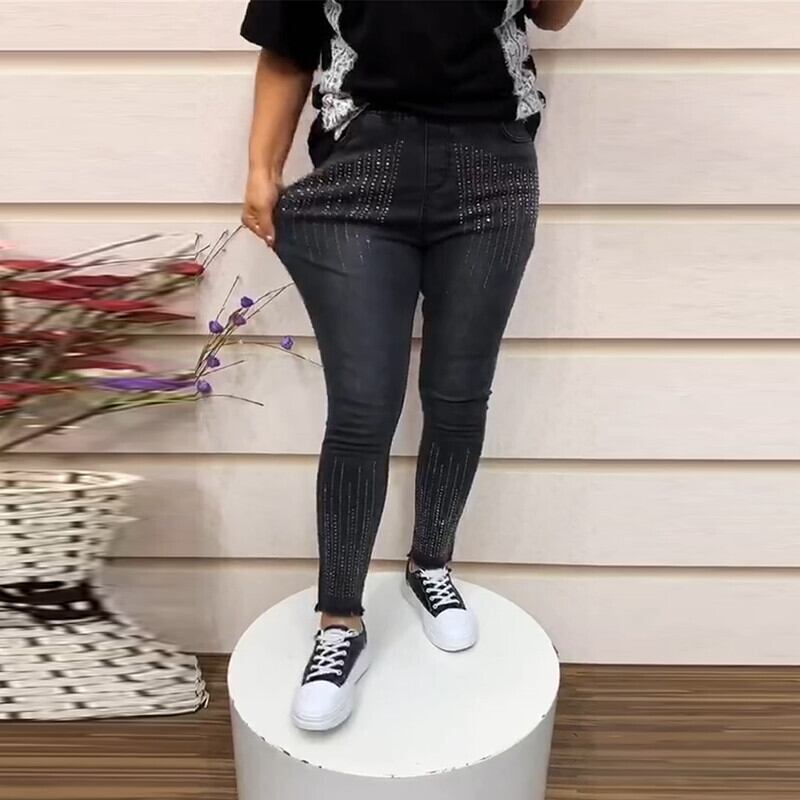 スリムパンツ ジーンズ オータムハイウェストルーズスタイル 大きめサイズ 秋物 ミックスインファッション87354515150