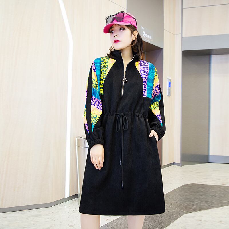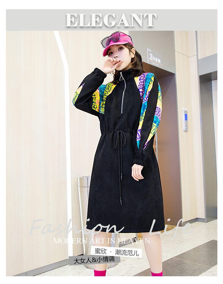 オータムスタイルドレス ジッパー薄手ウェストギャザー 大きめサイズ 秋物 ミックスインファッション81115459072