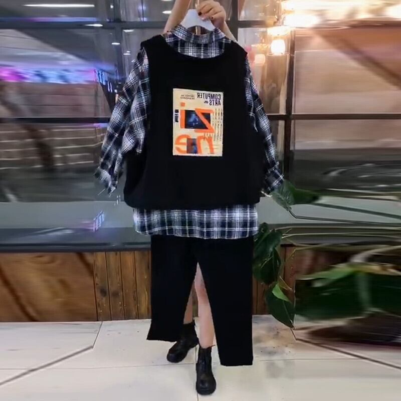 色:ブラック+チェックシャツツーピーススーツ,黒いズボン