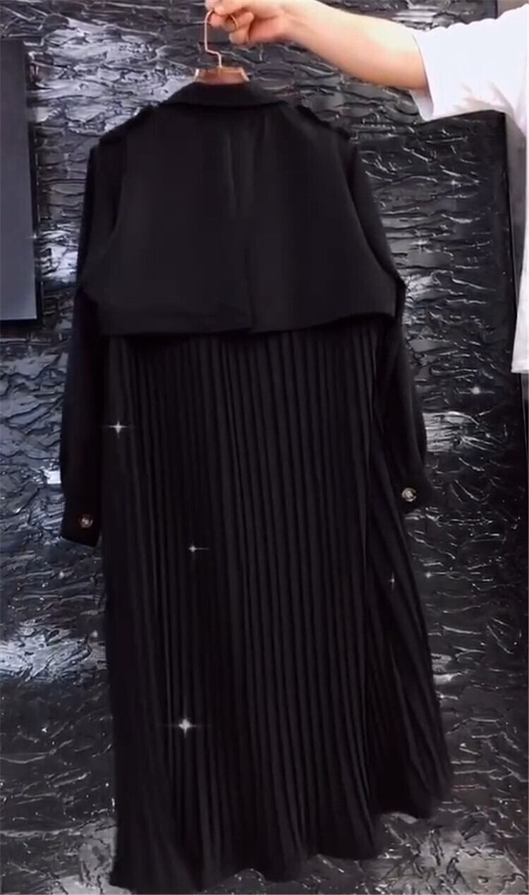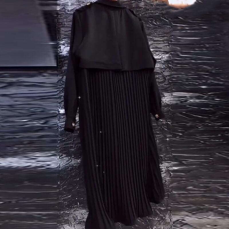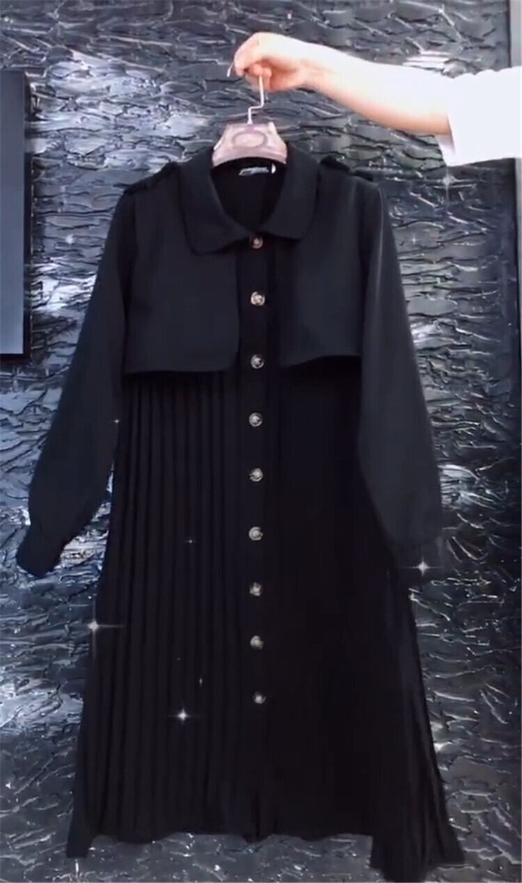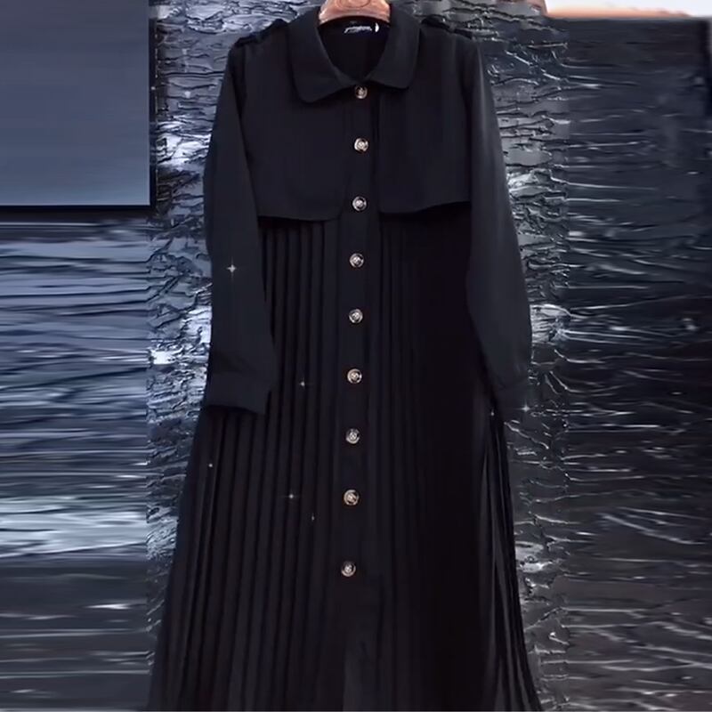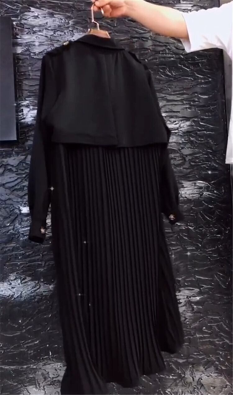 ウェストオータムプリーツドレス 大きめサイズ 秋物 ミックスインファッション14893799011