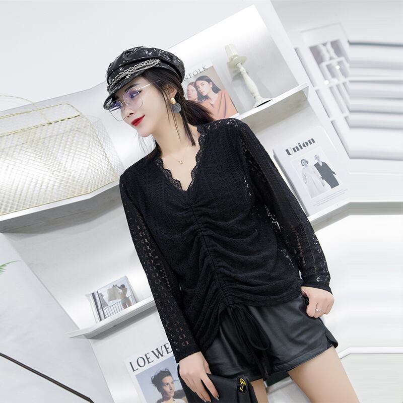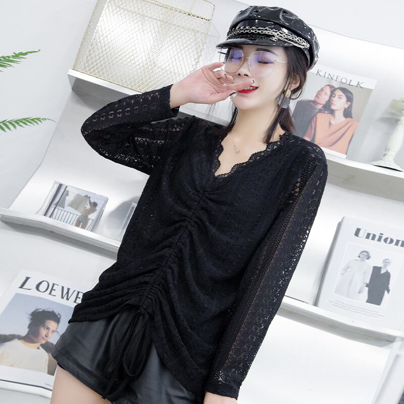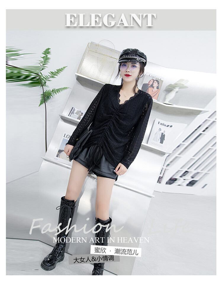 オータムギャザーVネックスタイルトップス ルーズシャツ Tシャツ ロング 大きめサイズ 秋物 ミックスインファッション7862748532