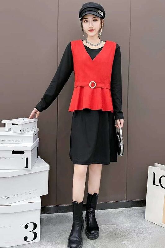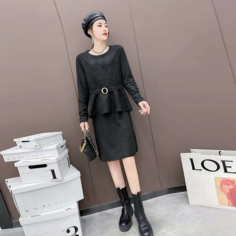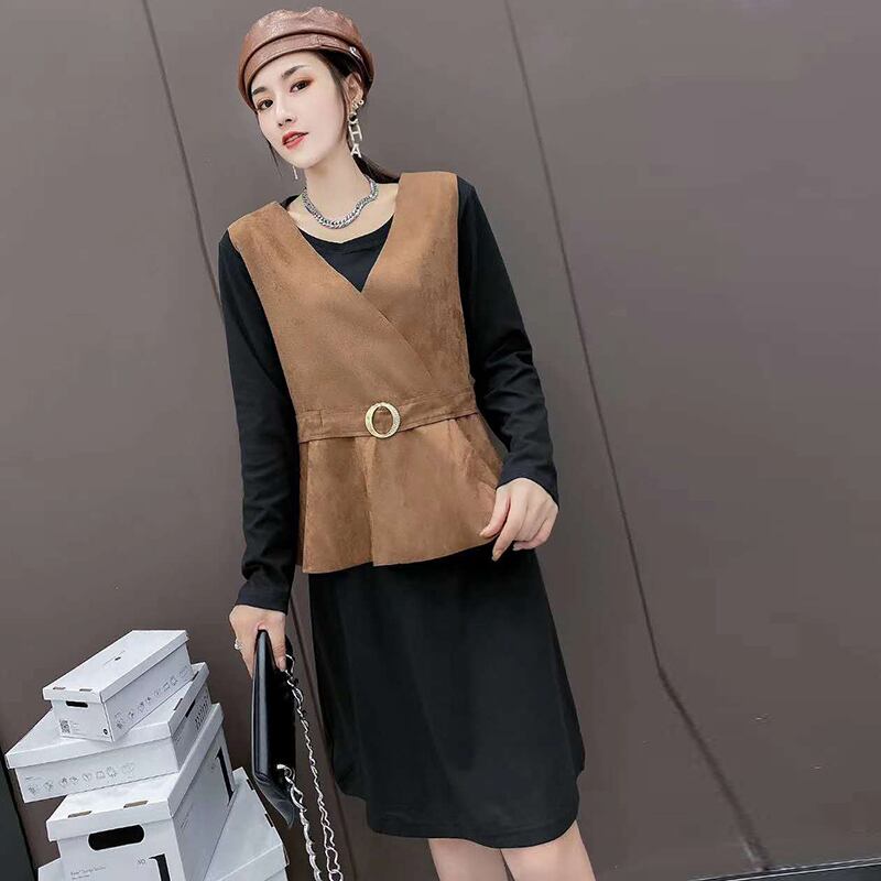 スタイル薄手ルーズカジュアルドレス ロング 大きめサイズ ミックスインファッション54195532097