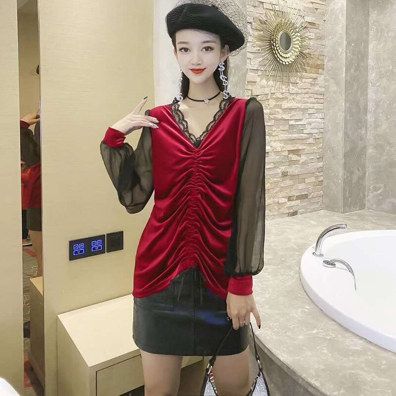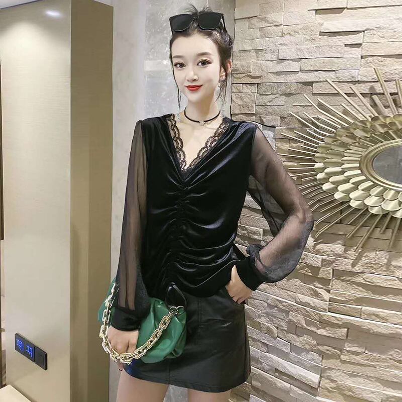 Tシャツ シャツ オータムウィンタールーズ薄手ベルベット ロング 秋物 冬物 ミックスインファッション95712707071