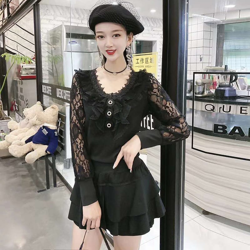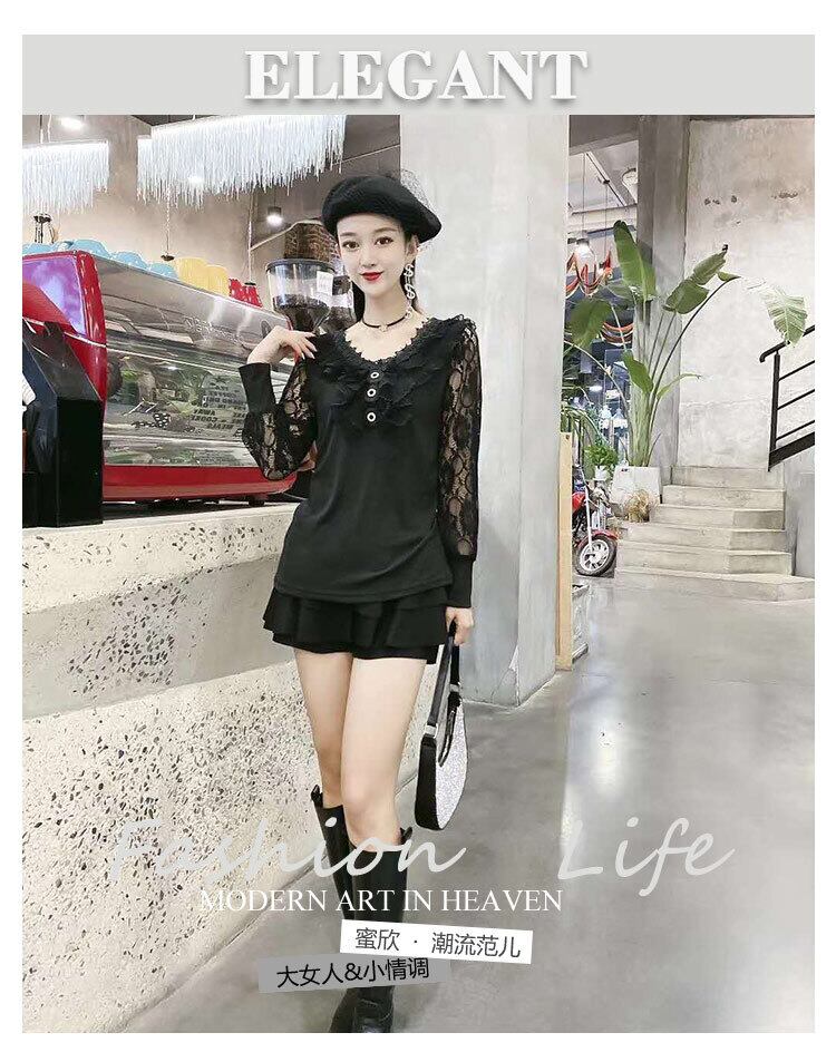 レースTシャツ シャツ ルーズトップス ロング 大きめサイズ オータム 秋物 ウィンター 冬物 ミックスインファッション47779528382