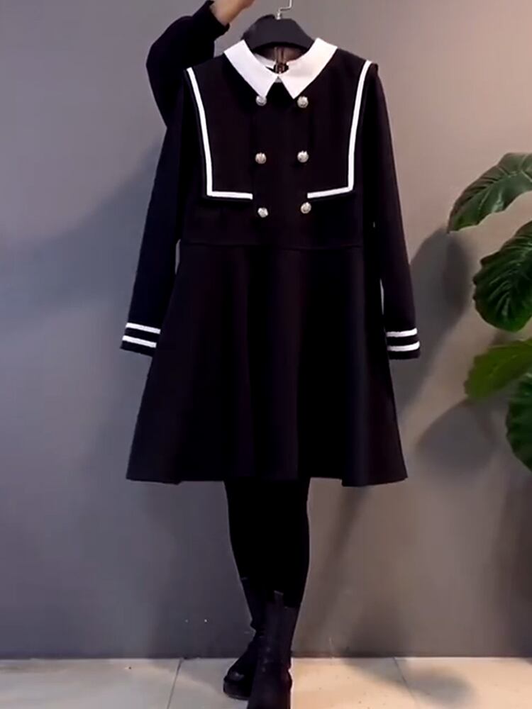 スプリングスタイルボタンストライプドレス ルーズ薄手 大人ガーリー スウィート キュート カジュアル 春物 ミックスインファッション16569344013