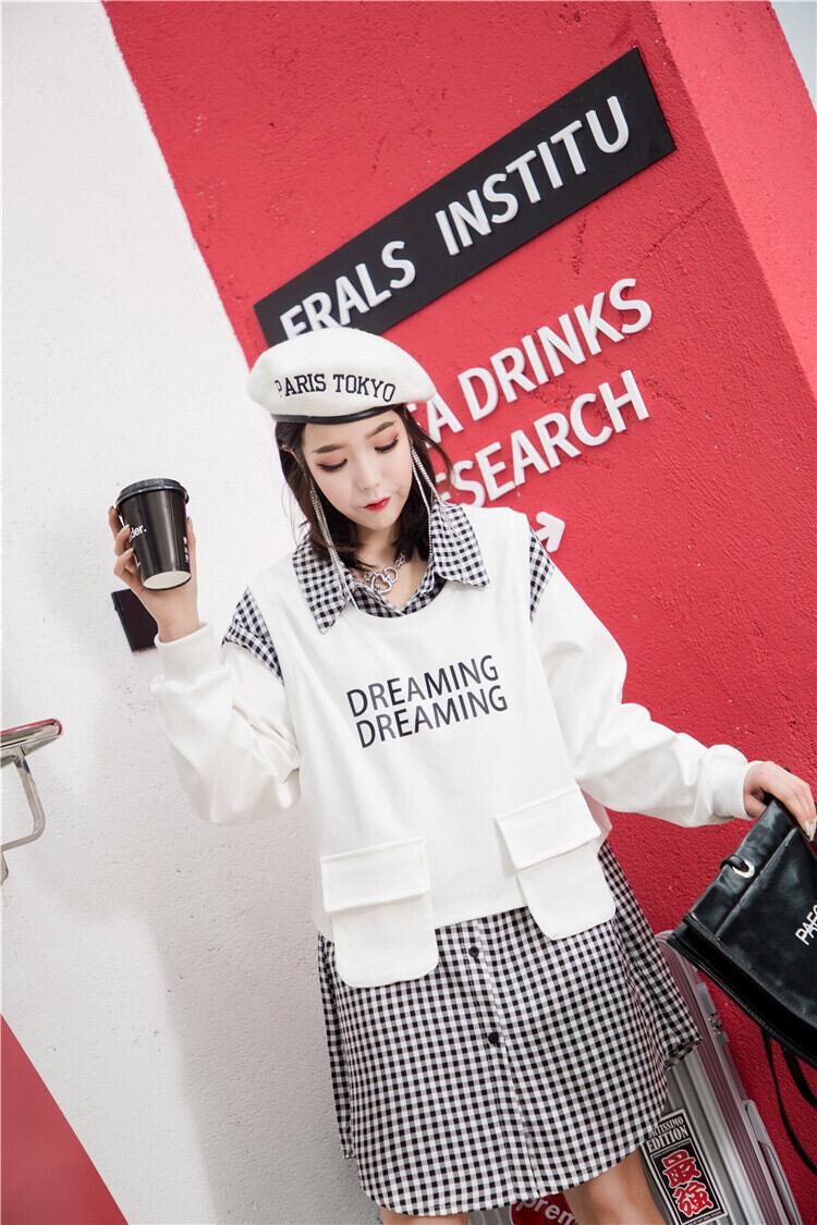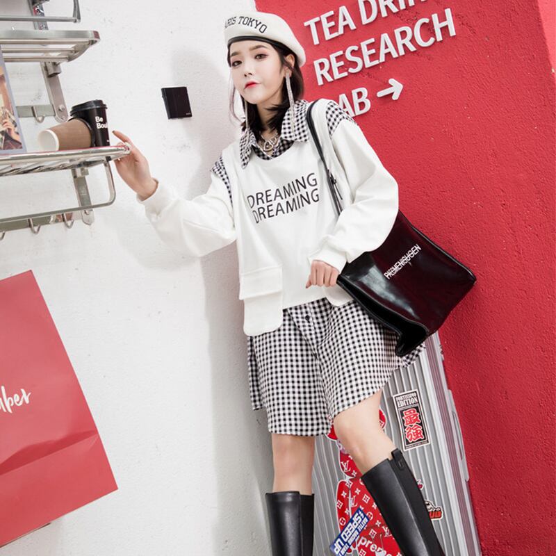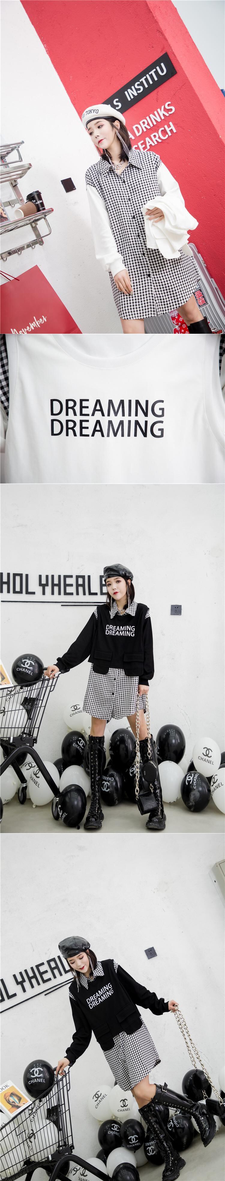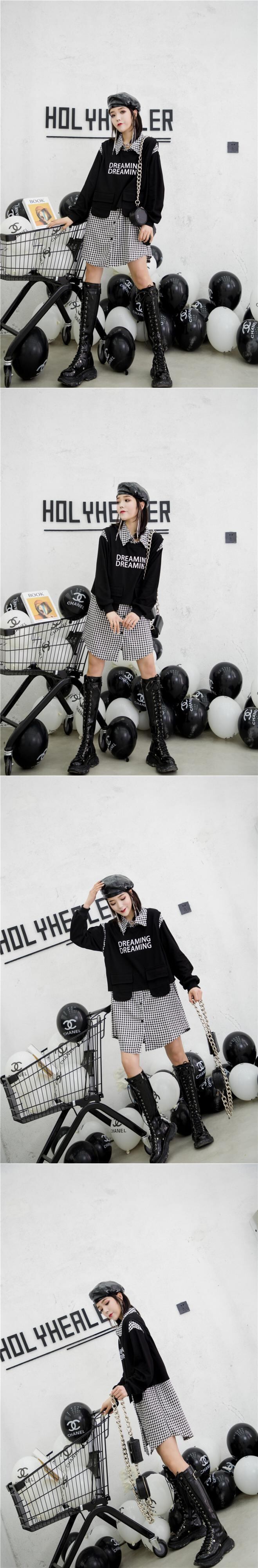 格子柄スカート ドレス 薄手スプリング 大きめサイズ 春物 ミックスインファッション55083745191