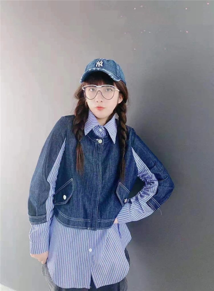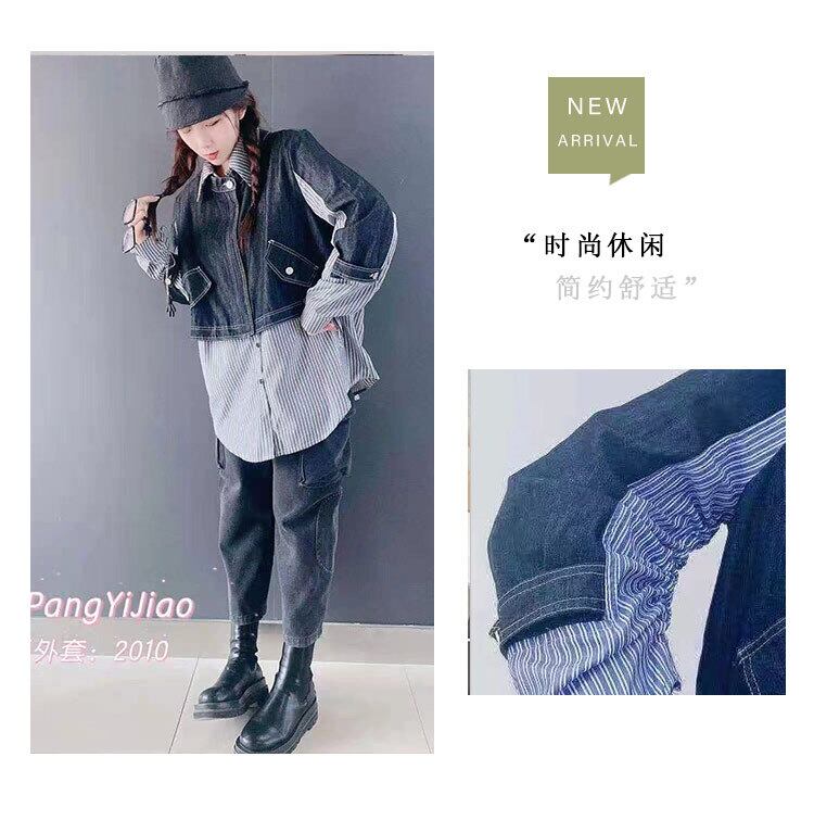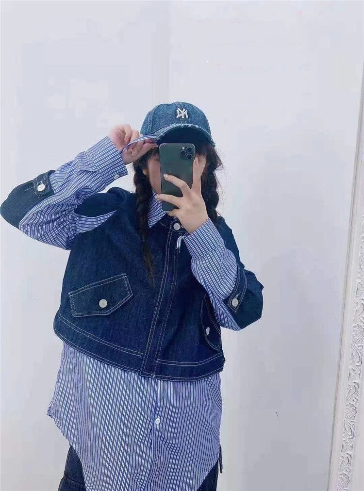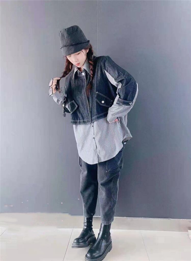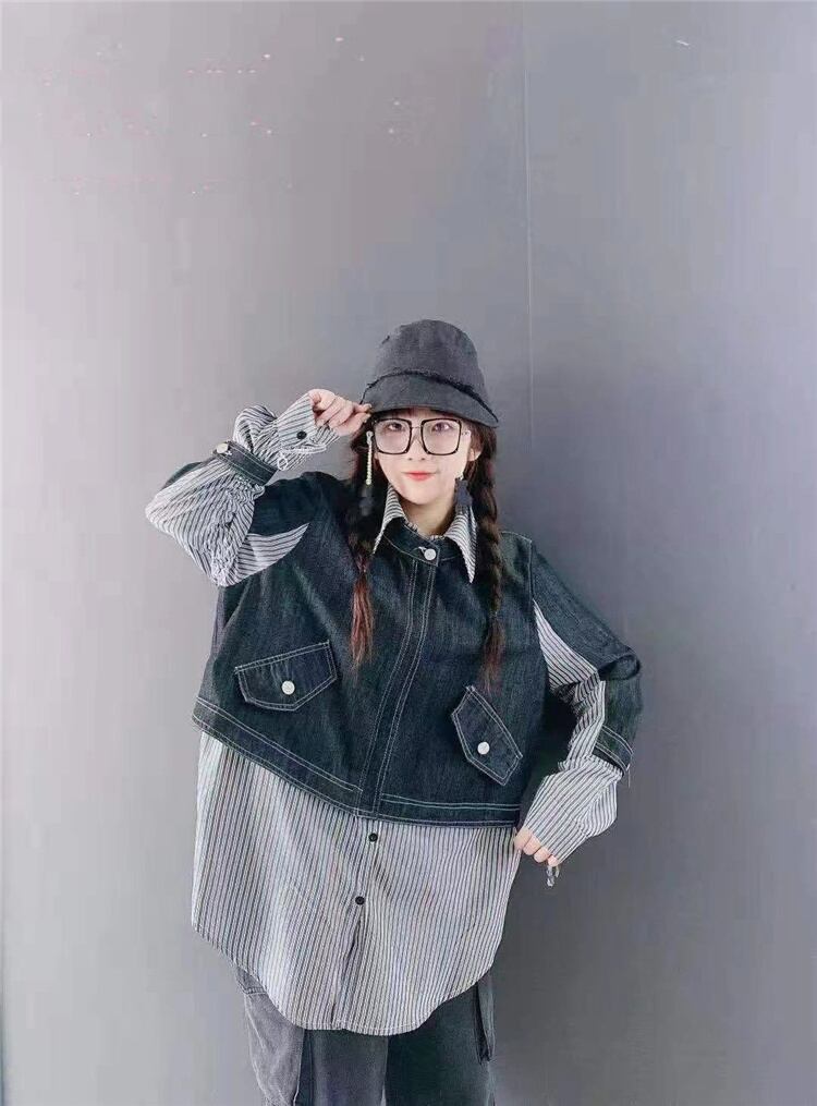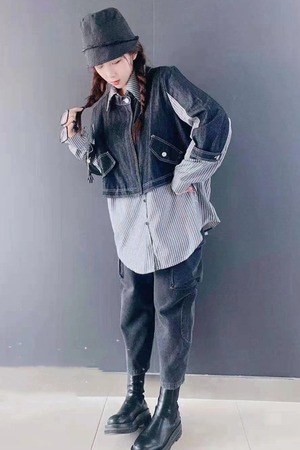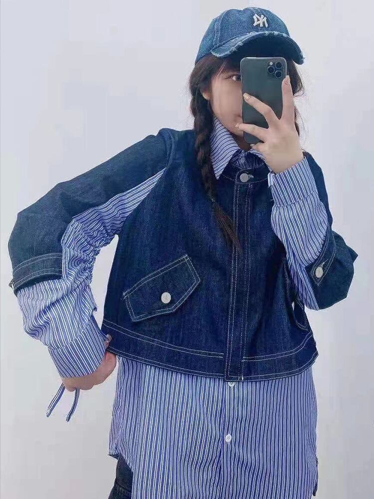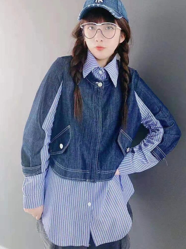 スプリングカジュアルルーズシャツ ダブルポケットストライプジャケット 春物 ステッチ ミックスインファッション31842910278