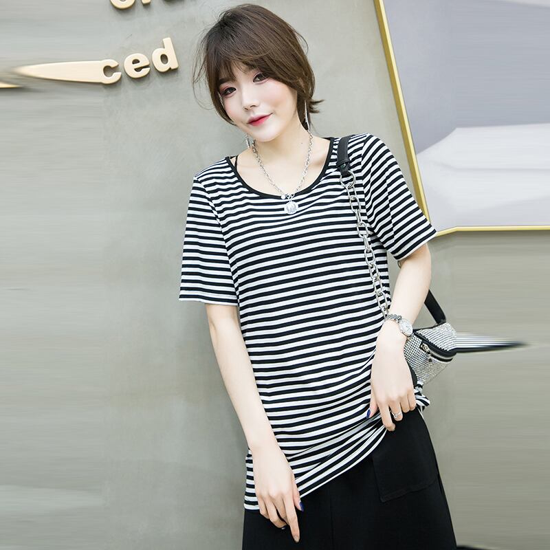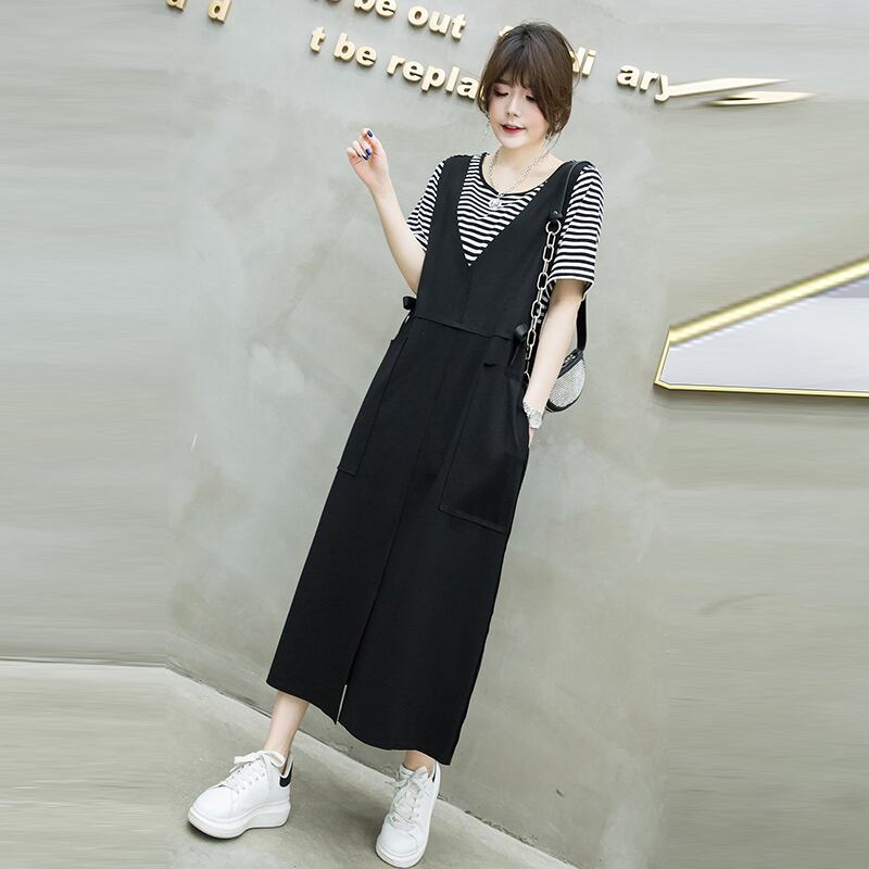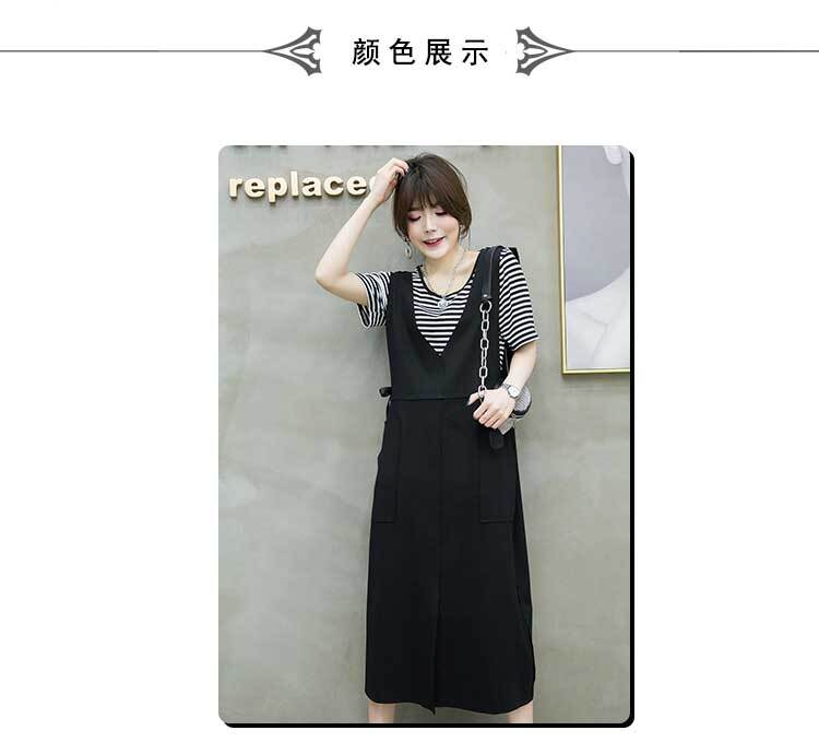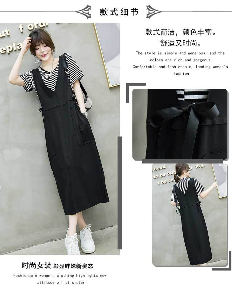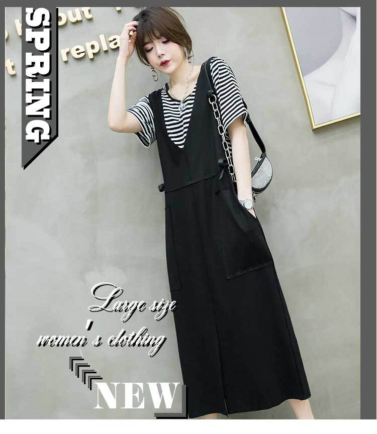 スプリングドレス ストライプTシャツ スカート 大きめサイズ 春物 ミックスインファッション25714106081