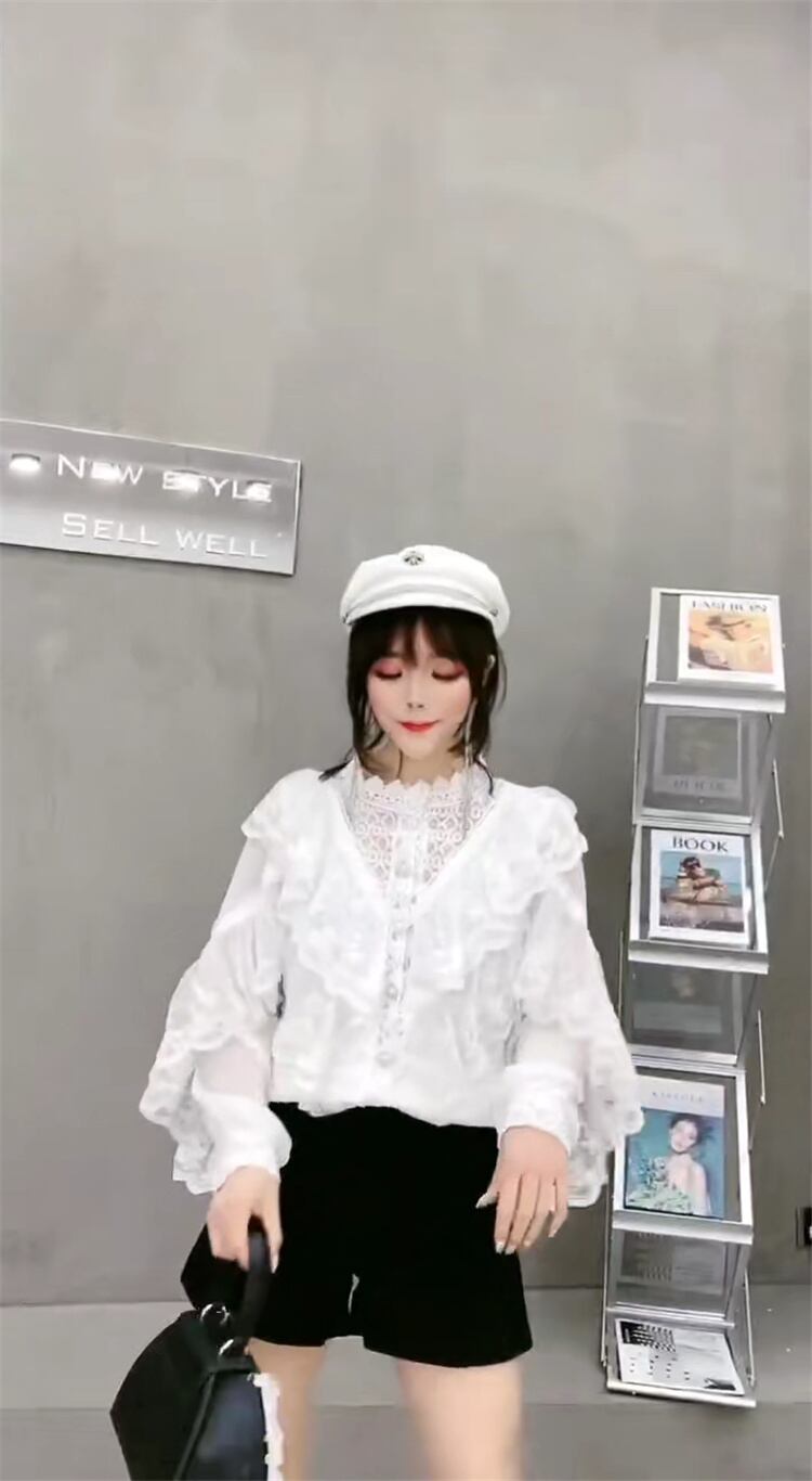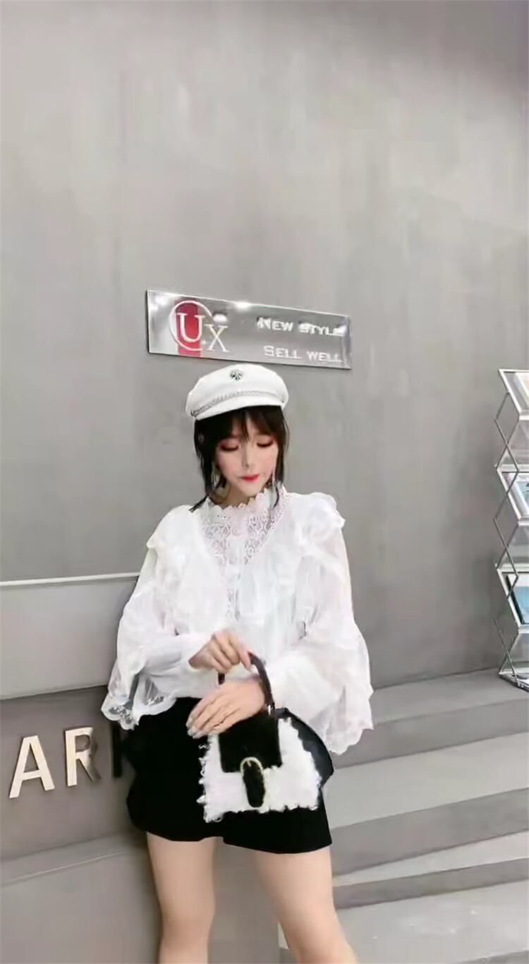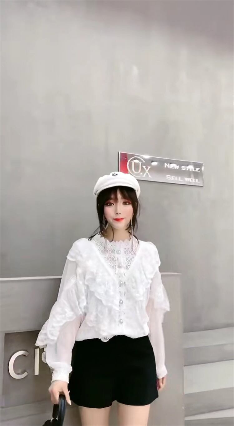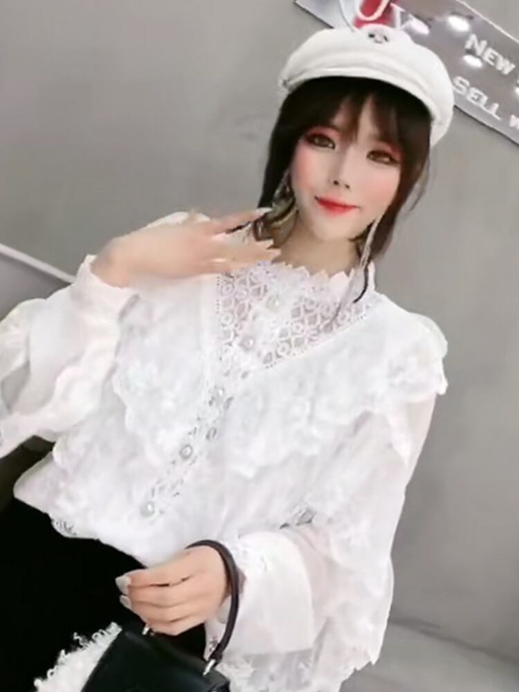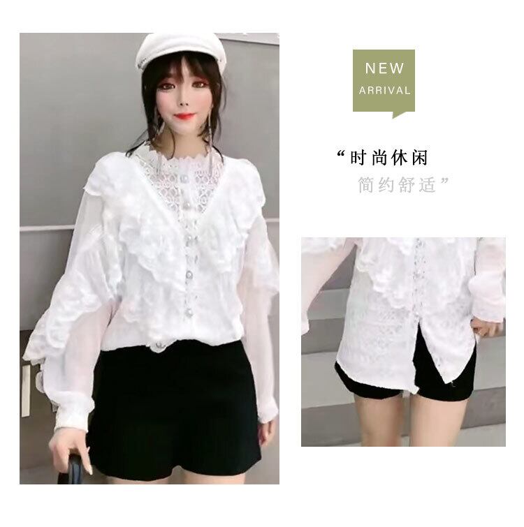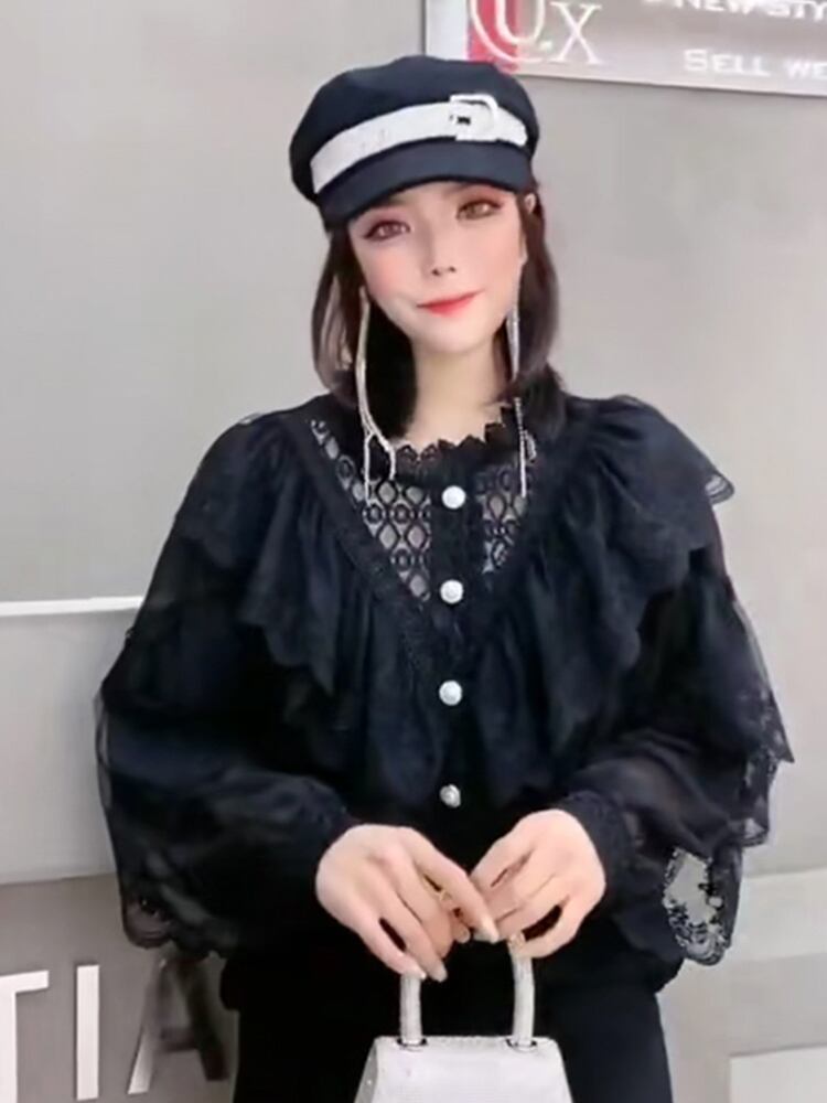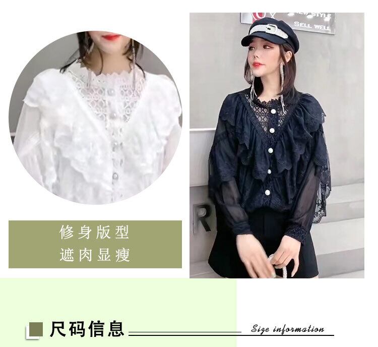 スプリングレースシャツ ブラウス メッシュスリーブ 春物 ステッチ ミックスインファッション84919707635