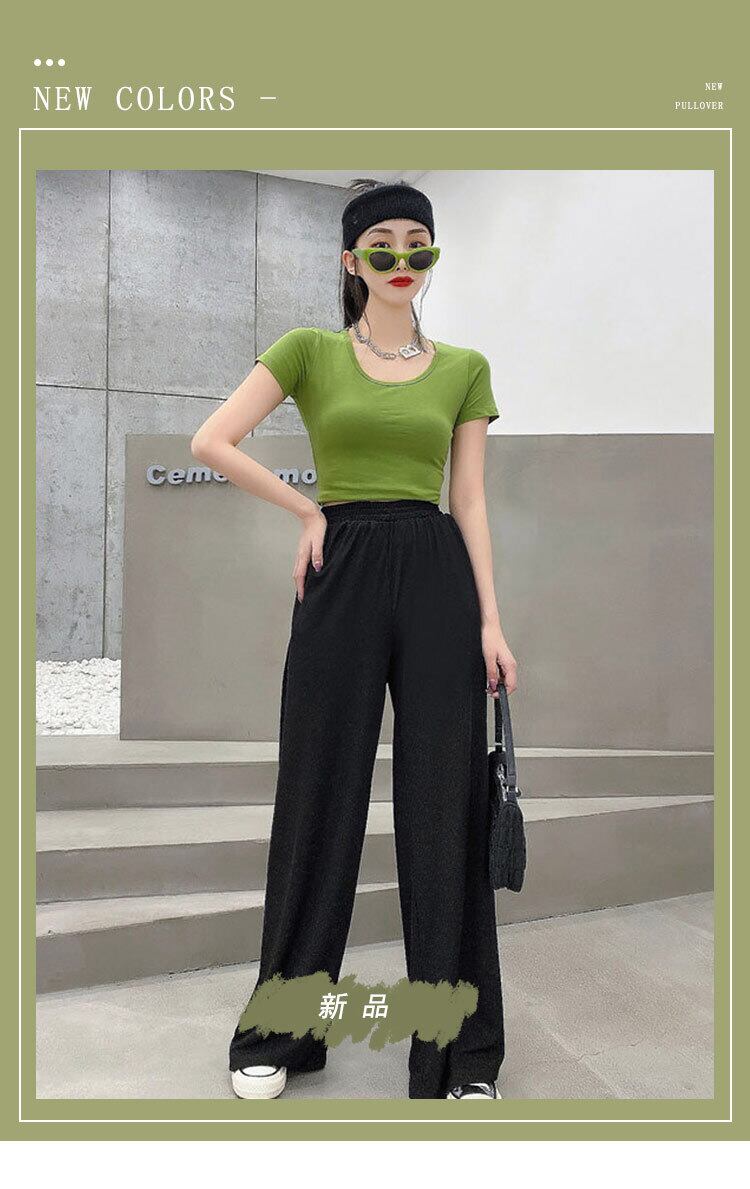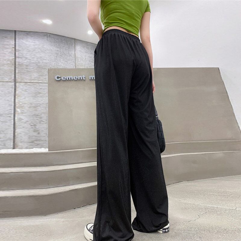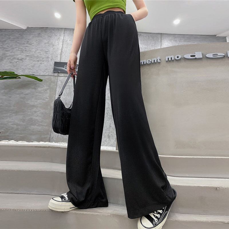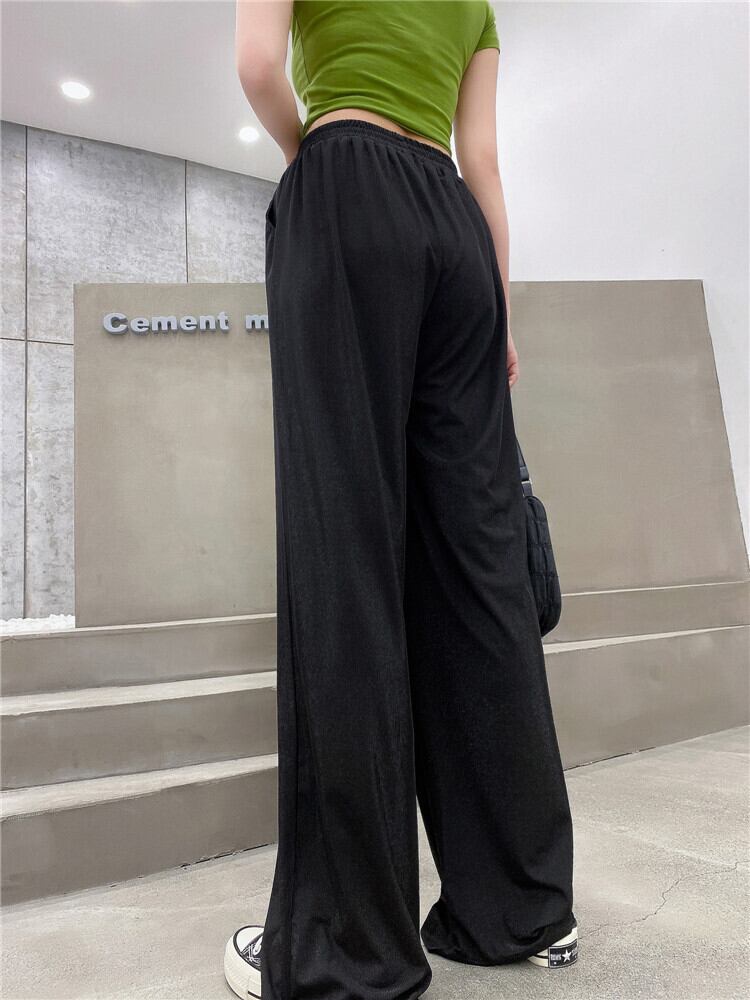 サマースタイルハイウェストウェストルーズカジュアルスリムストレッチワイドレッグ エラスティック 伸縮 大きめサイズ 夏物 ワイドパンツ ミックスインファッション92714926404