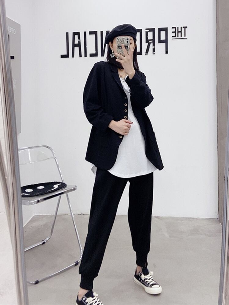 スプリングカジュアルルーズスタイルジャケット レディースパンツ ストリート 大きめサイズ 春物 ミックスインファッション91966592592