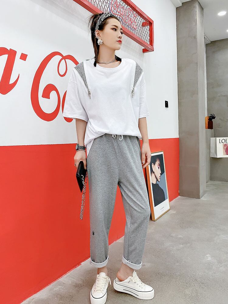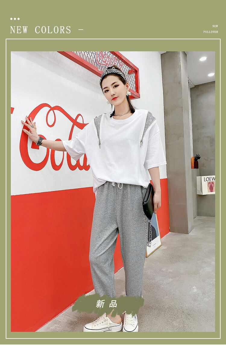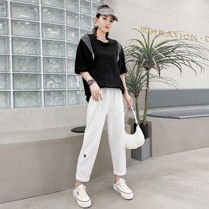 ラウンドネックジッパーTシャツ シャツ レディースルーズスプリングパンツ 大きめサイズ 春物 Oネック ミックスインファッション10679909808