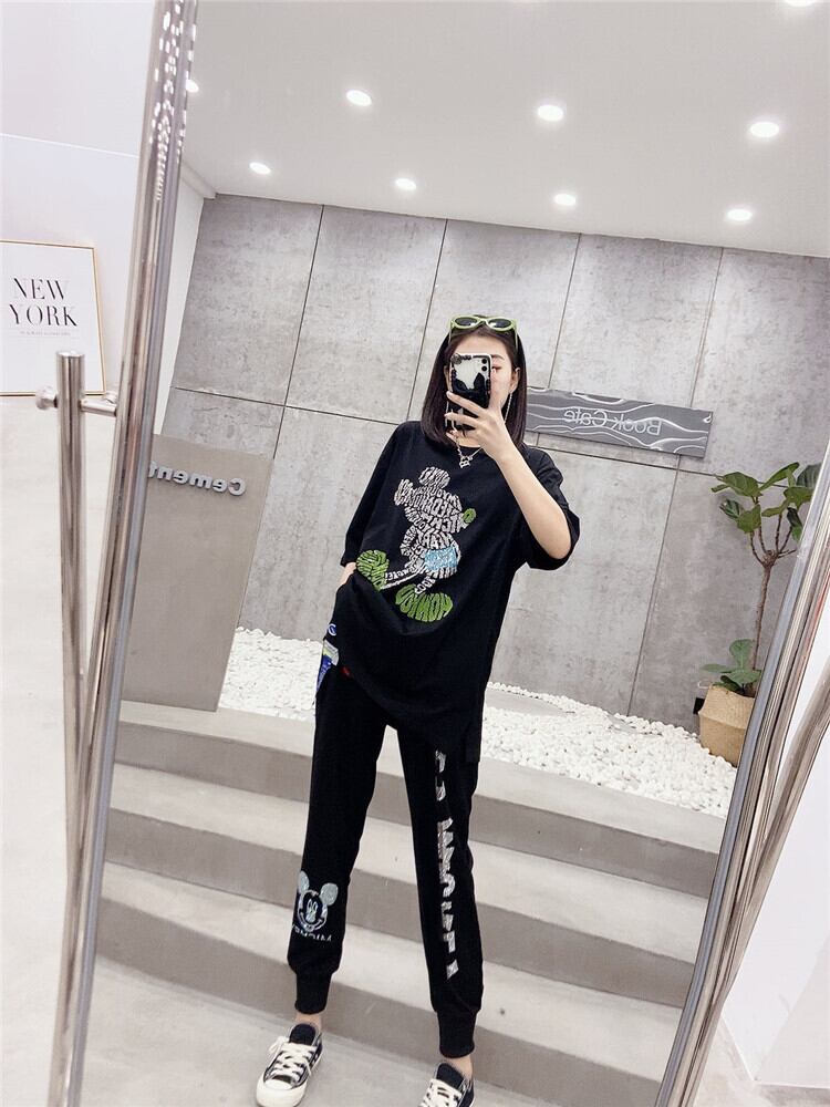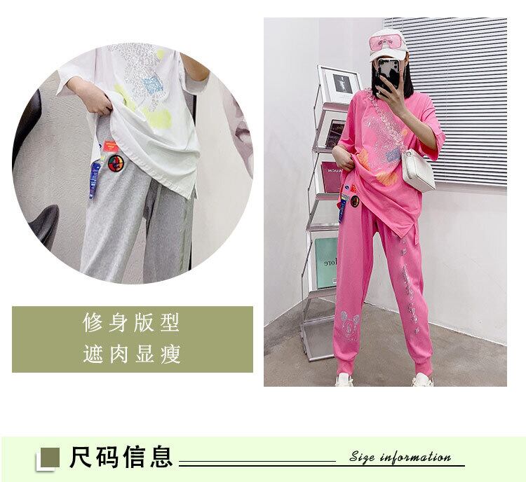 カジュアルパターンラウンドネックTシャツ パンツ 大きめサイズ Oネック ミックスインファッション44599555865