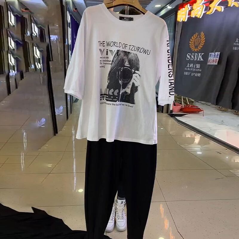 サマーTシャツ カジュアルパンツ 大きめサイズ 夏物 ミックスインファッション11284080894