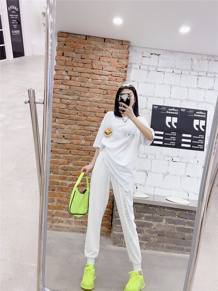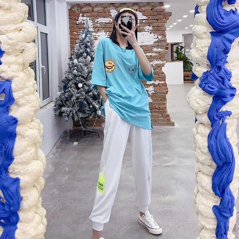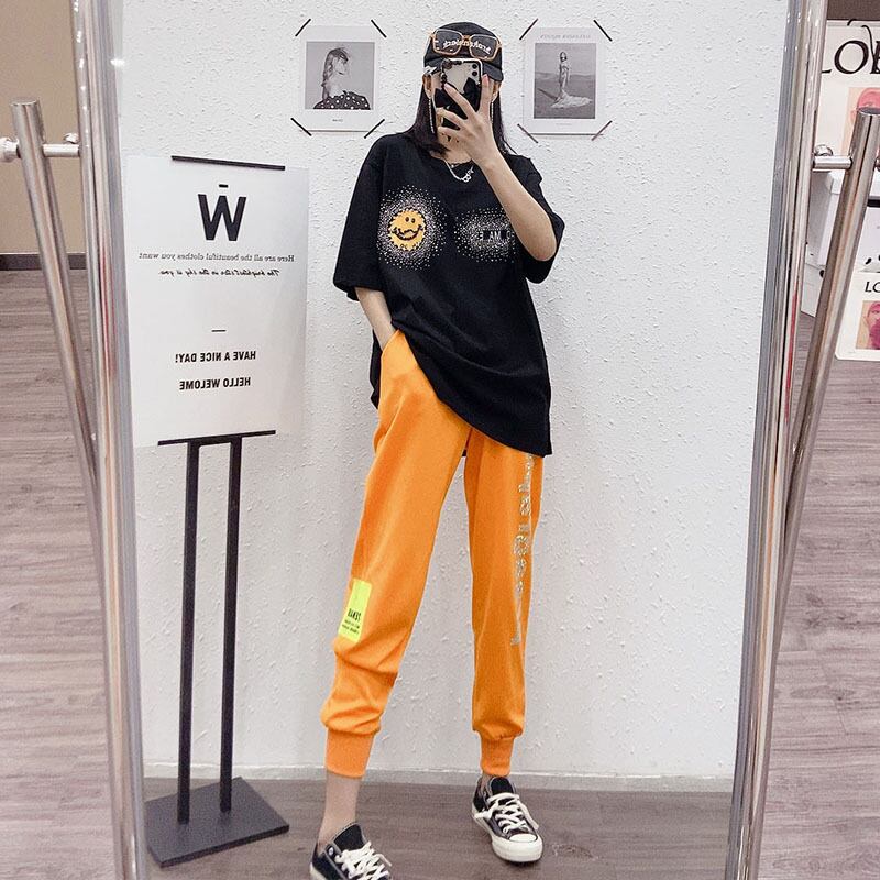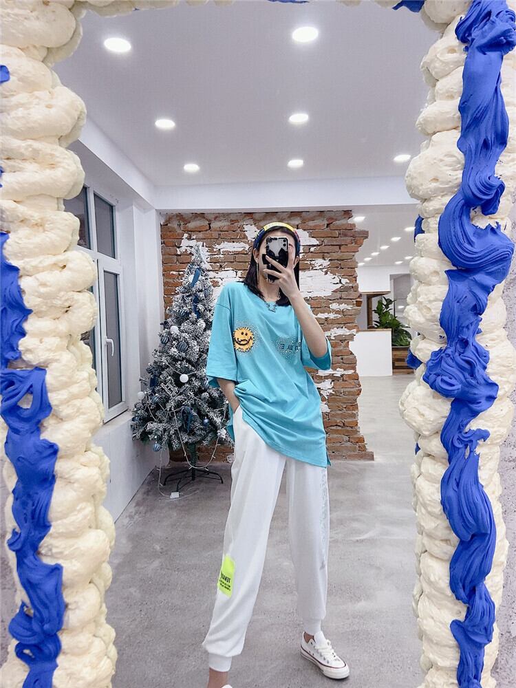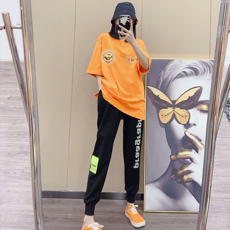 サマーラウンドネックTシャツ ストレッチウェストパンツ レディース エラスティック 伸縮 大きめサイズ 夏物 Oネック ミックスインファッション29559854159