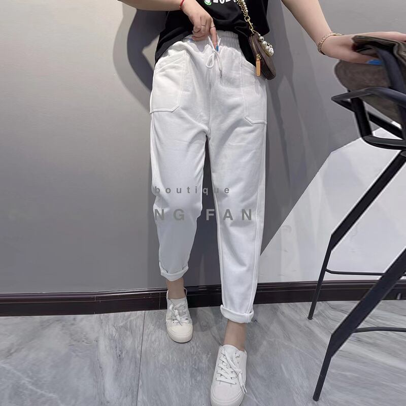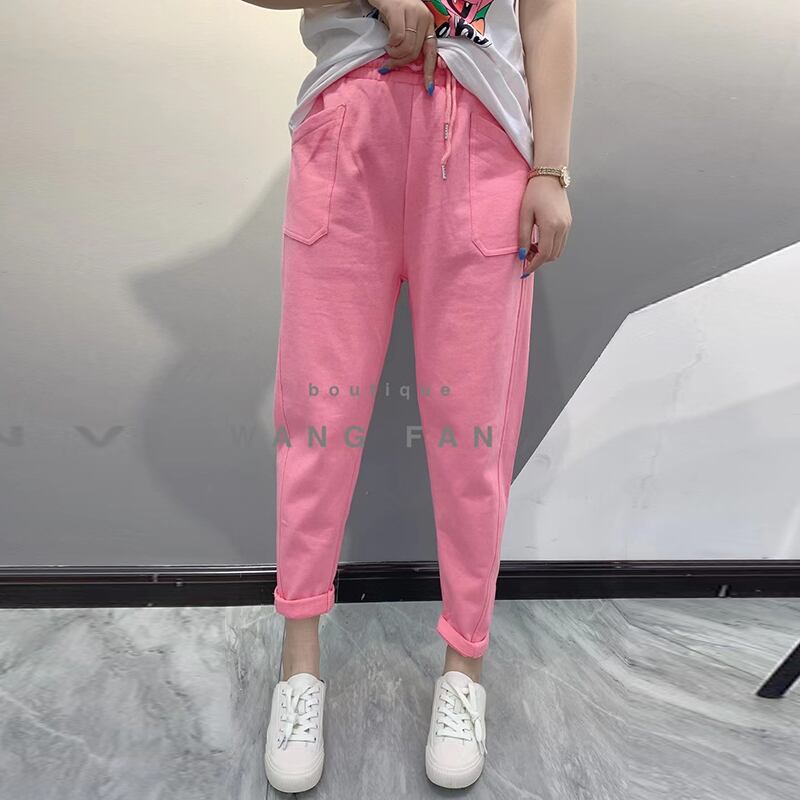 カラーカジュアルパンツ スプリングストレッチウェスト レース エラスティック 伸縮 大きめサイズ 春物 レースアップ ピュア ミックスインファッション26861121906