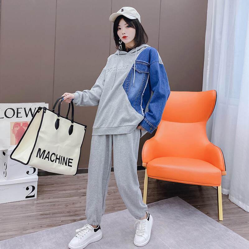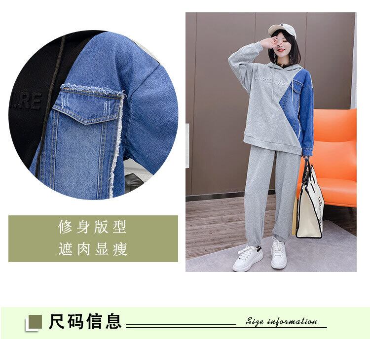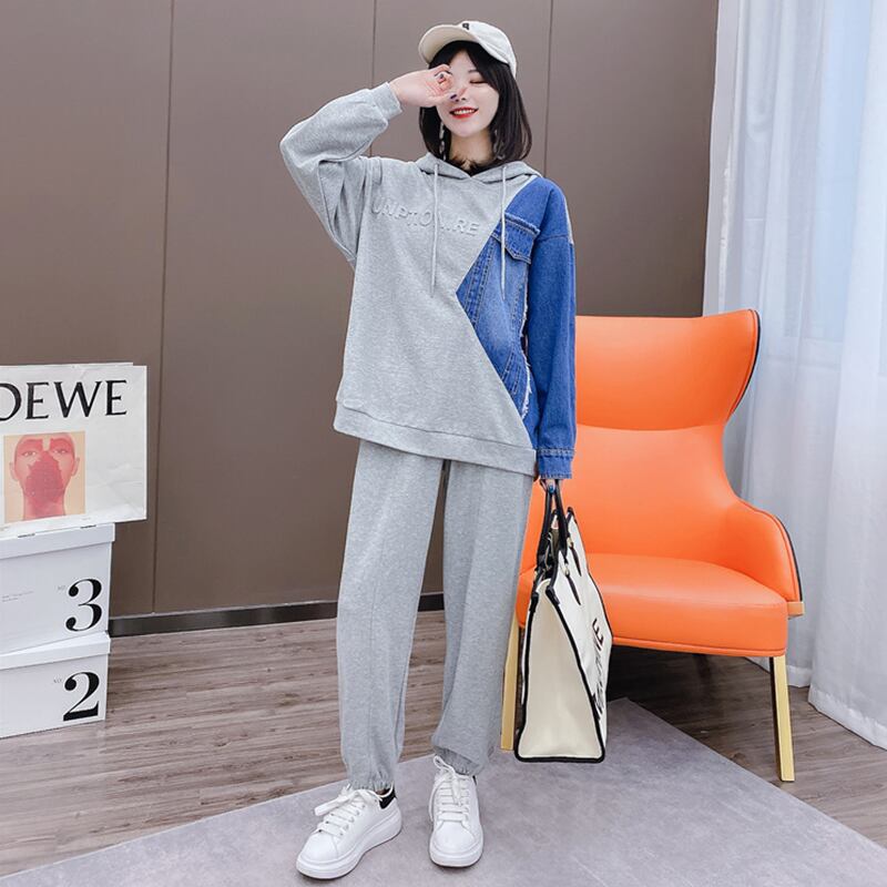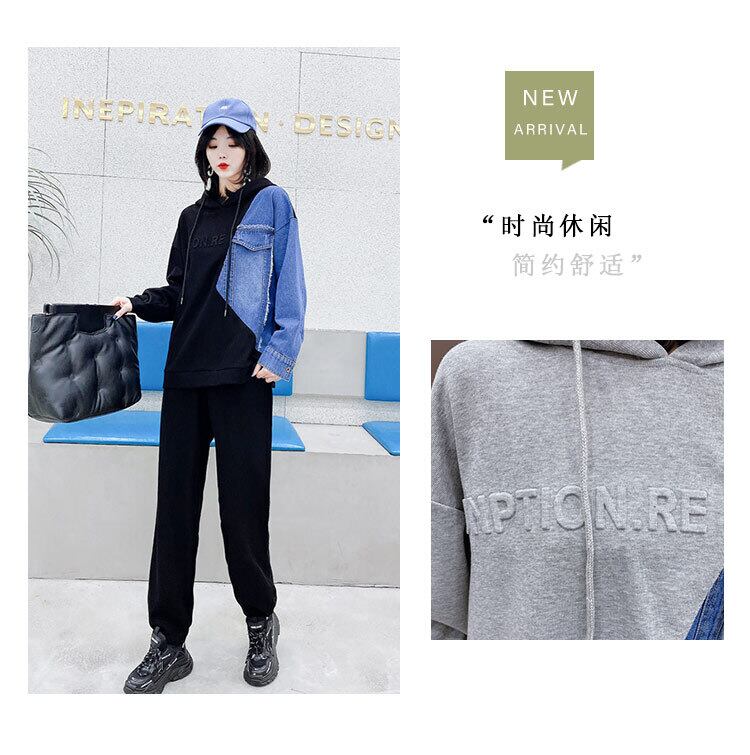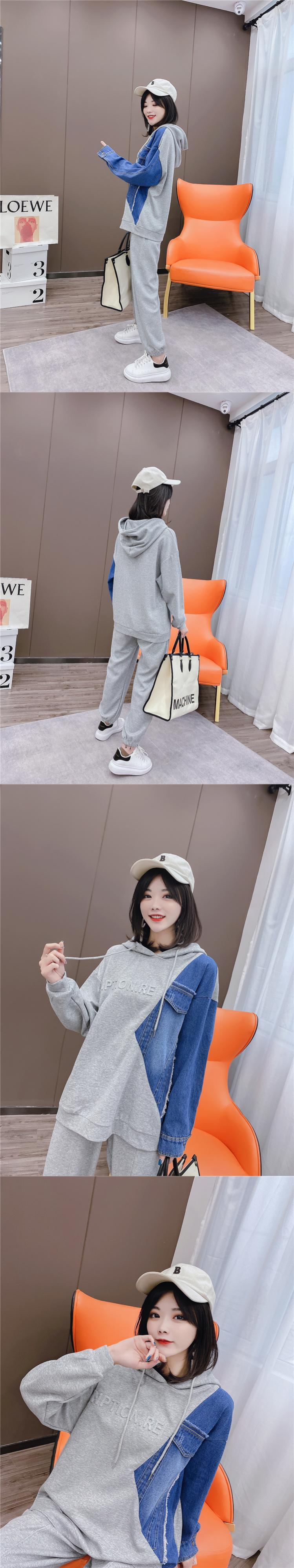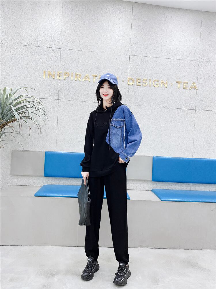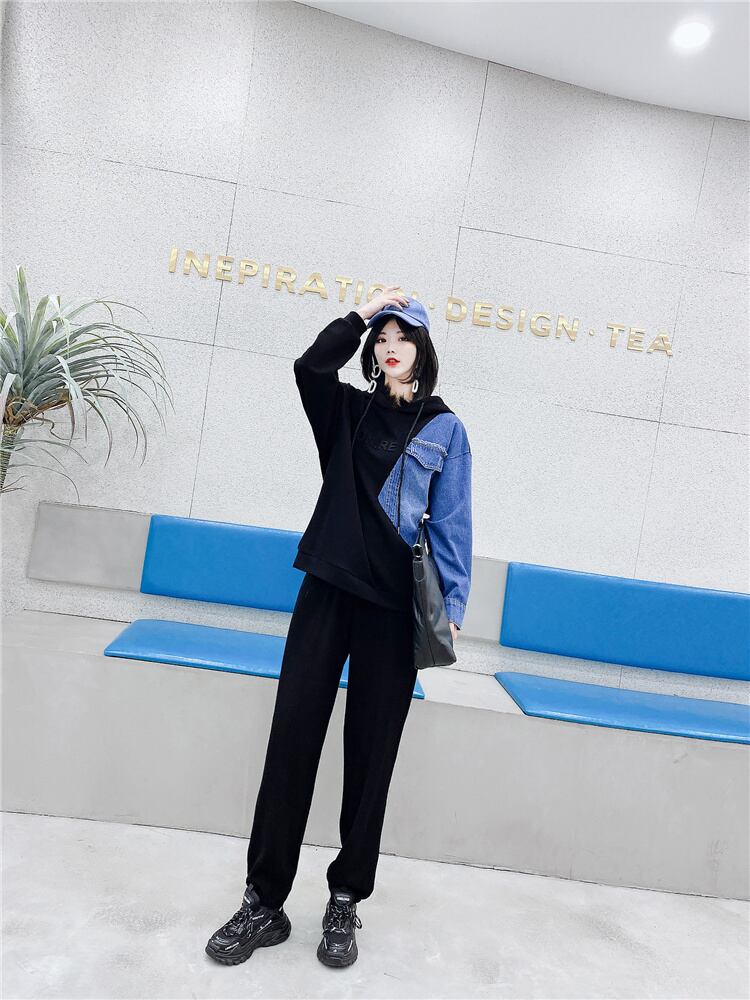 スプリングスタイルフードセーター カジュアルパンツ ストリート 春物 ステッチ ミックスインファッション33096637250