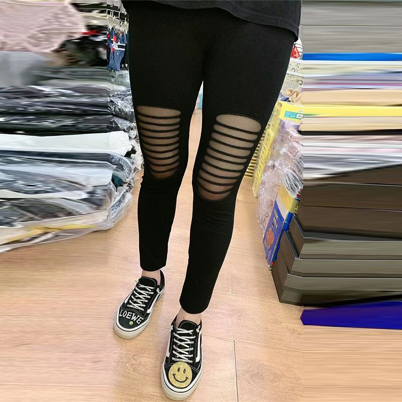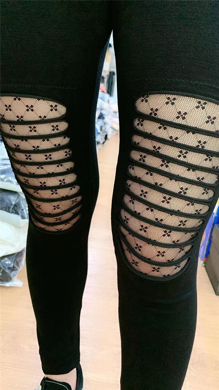 スリムソリッド カラーハイウェストウェストメッシュダークパターンパンツ レギンス サマー 大きめサイズ 夏物 ソリッドカラー ミックスインファッション99448119333