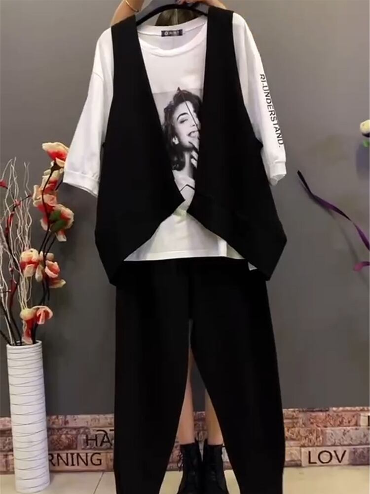 サマーTシャツ スタイルパンツ 大きめサイズ 夏物 ミックスインファッション44216990925