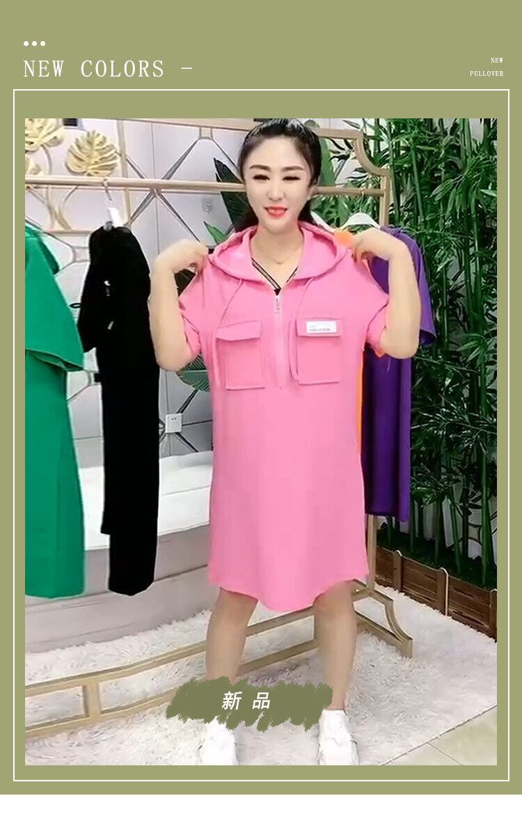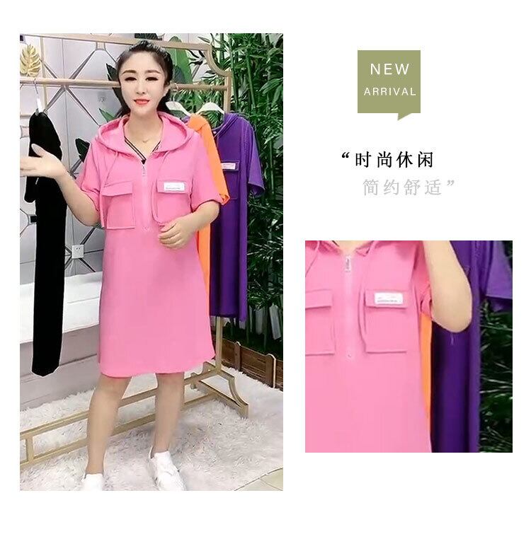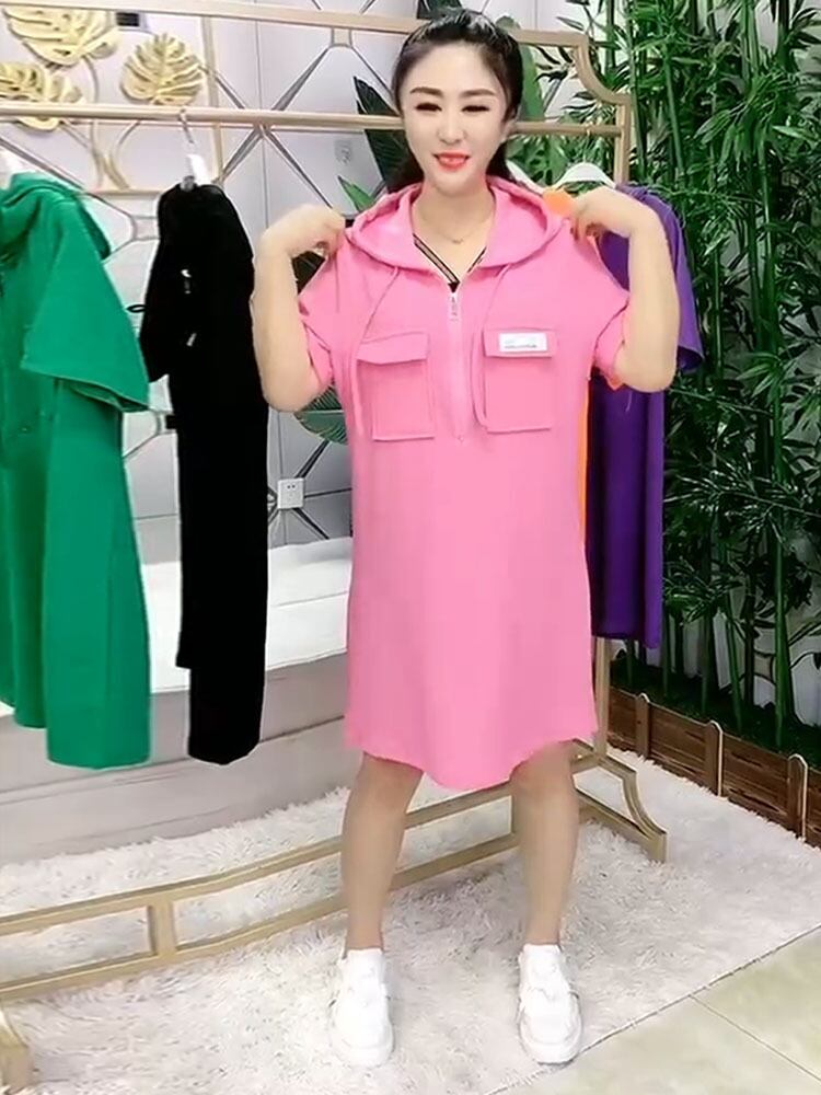 ドレス サマーフードジッパーダブルポケットカジュアルルーズセーター 大きめサイズ 夏物 ミックスインファッション1132546353