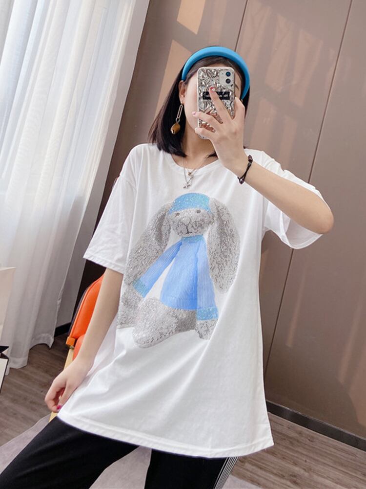 プリント柄Tシャツ スプリングトップス ルーズスタイル ロング レッド 大きめサイズ 春物 ミックスインファッション56258982692