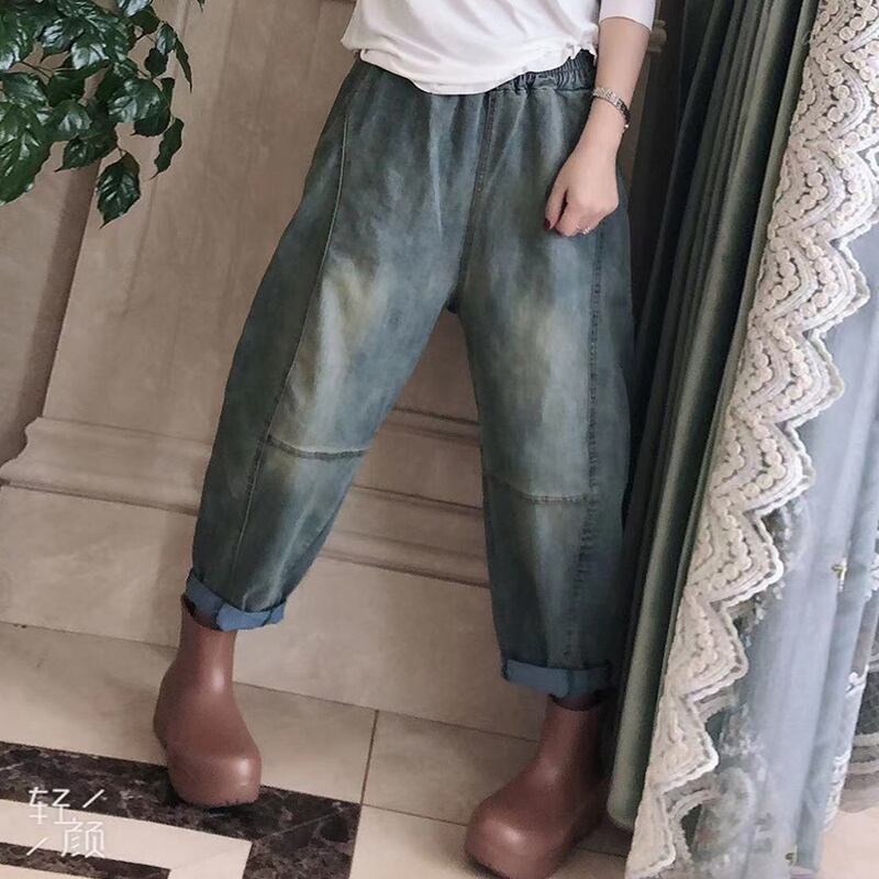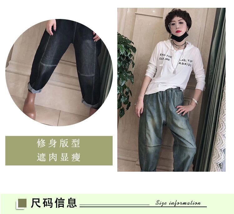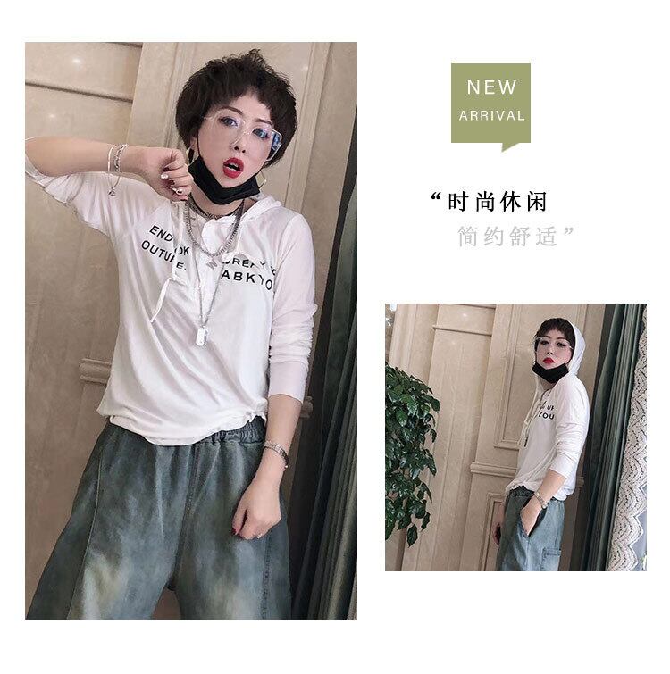 スプリングカジュアルフードギャザーTシャツ ストレッチウェストポケットジーンズ エラスティック 伸縮 春物 ステッチ ミックスインファッション30223347749