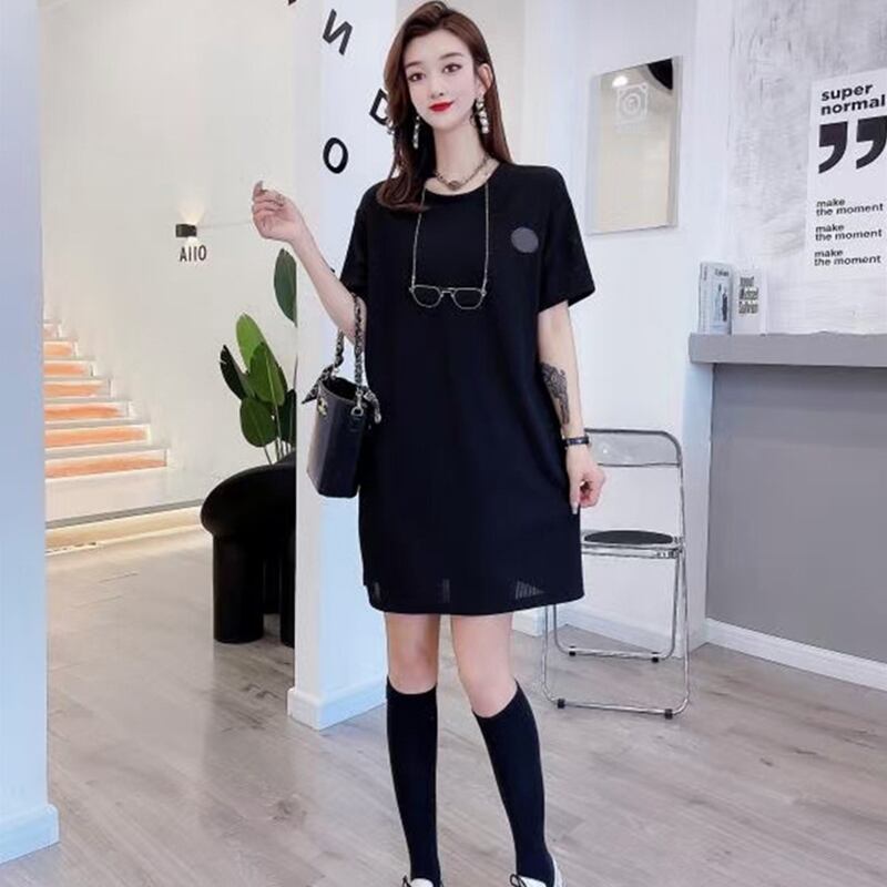 Tシャツ スカート スプリングルーズ薄手ラウンドネックメタル 大きめサイズ 春物 Oネック ミックスインファッション77942317132