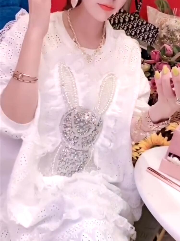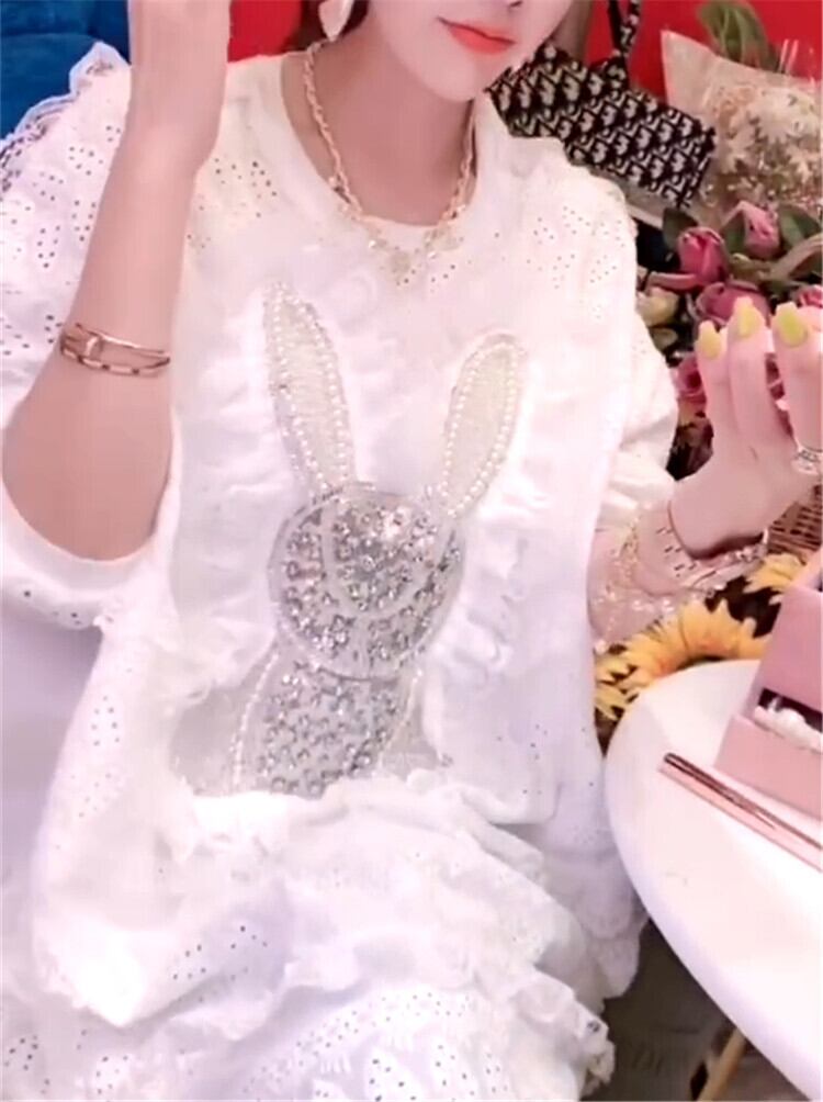 サマールーズラウンドネックレースシャツ トップス 大きめサイズ 夏物 Oネック ステッチ ミックスインファッション64908897582