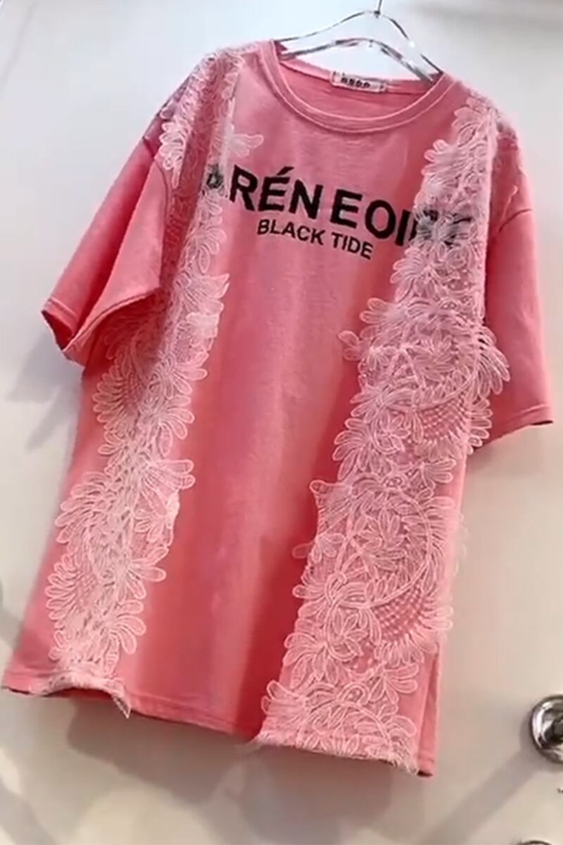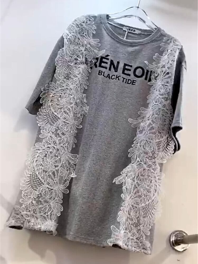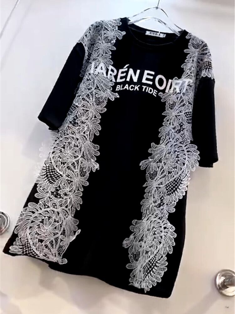 スプリングレースドレス Tシャツ 大きめサイズ 春物 ミックスインファッション10268284698