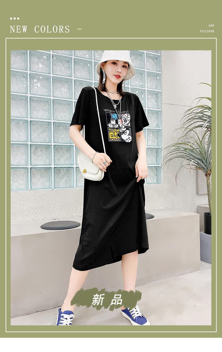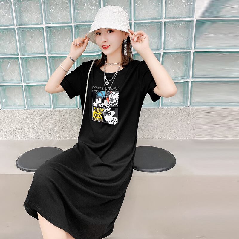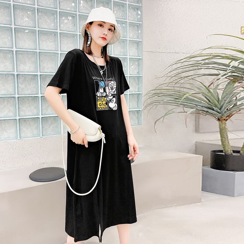 スカート サマードレス 薄手ラウンドネックショート 半袖 ハーフスリーブ 大きめサイズ 夏物 Oネック ミックスインファッション40047204318