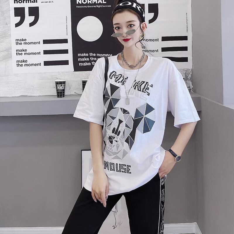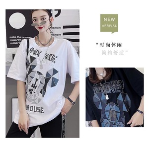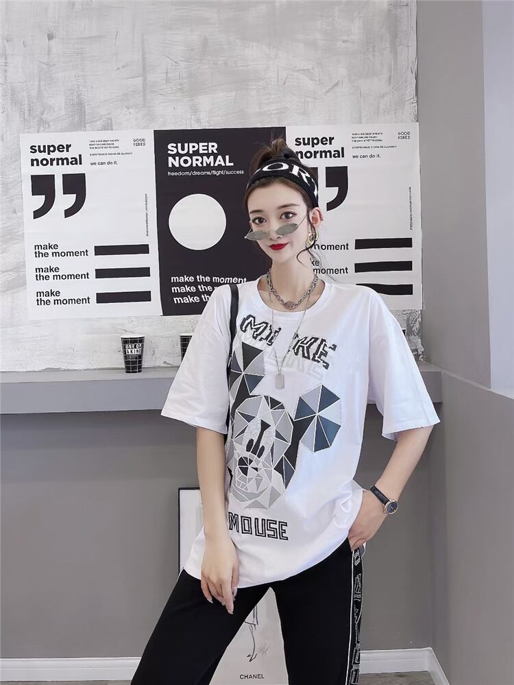 スプリングラウンドネックTシャツ シャツ ルーズ 大きめサイズ 春物 Oネック ミックスインファッション22510343311