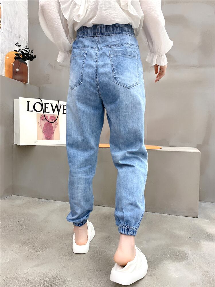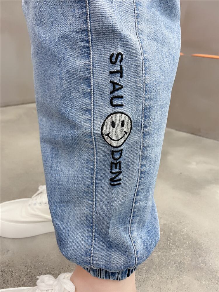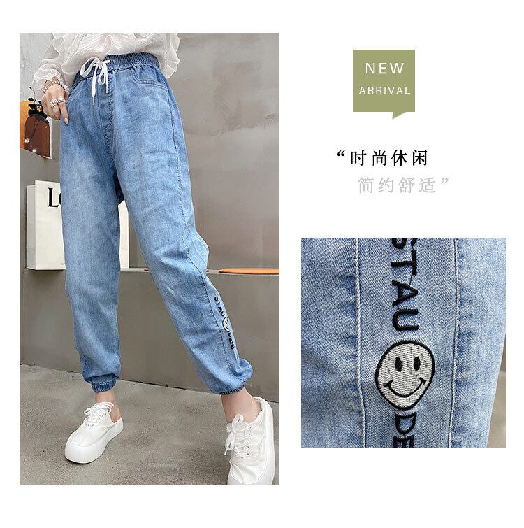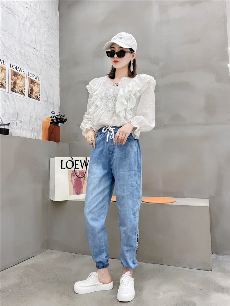 ジーンズ ルーズスタイルサイドストレッチパンツ レッド レース 刺繍 エラスティック 伸縮 大きめサイズ レースアップ ミックスインファッション87039115479