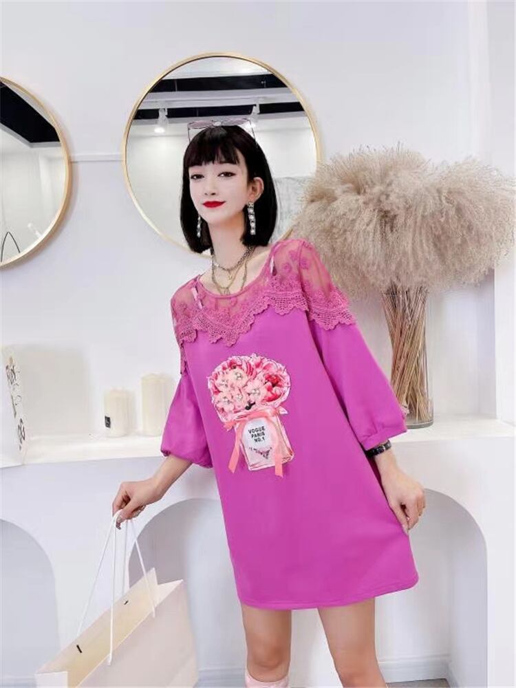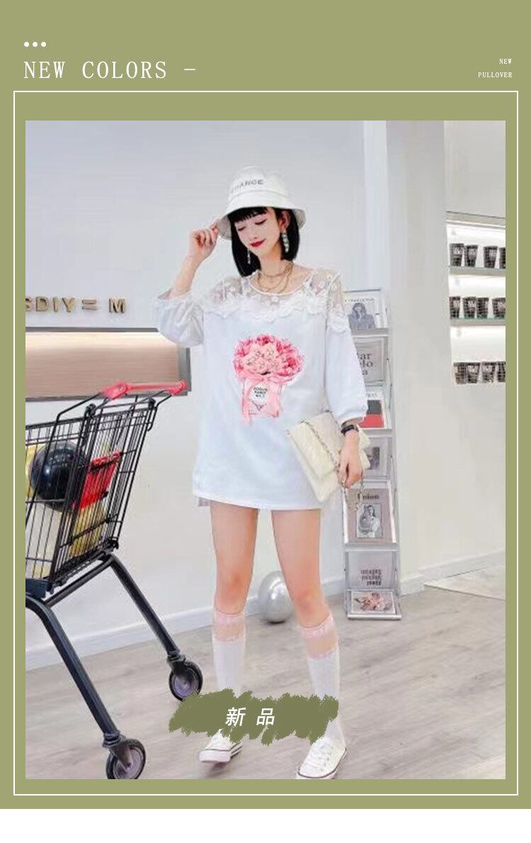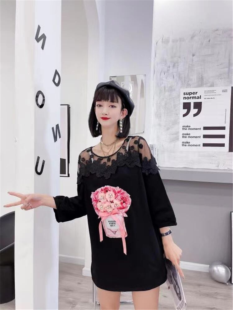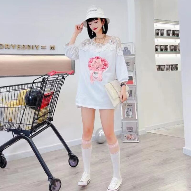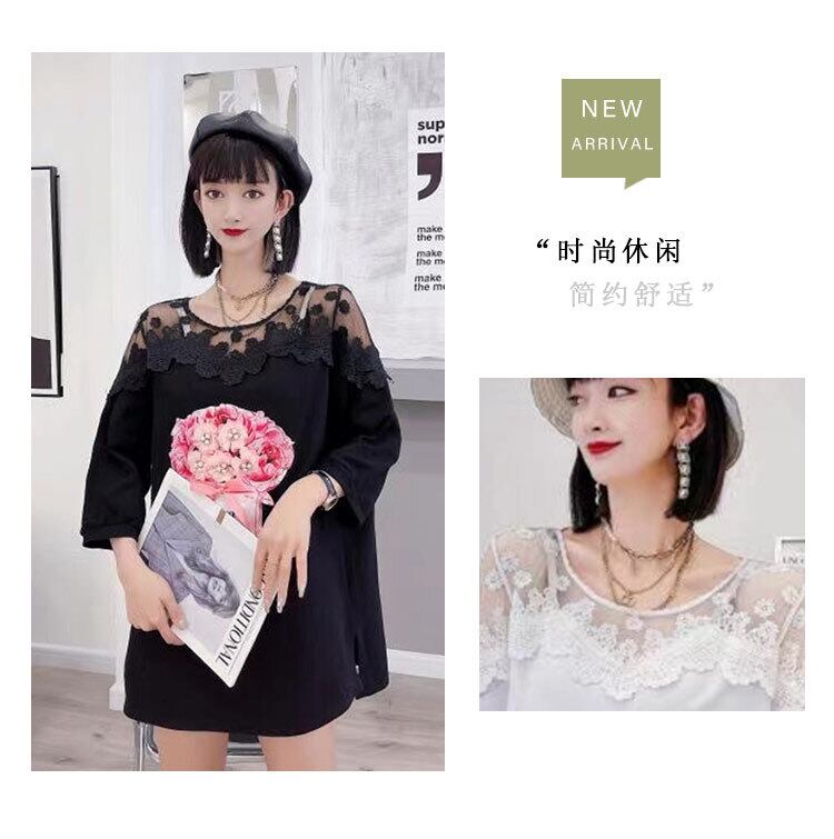 ラウンドネックメッシュレースFlowerデザイン パターンTシャツ シャツ レディーススタイル 大きめサイズ Oネック フラワーデザイン ステッチ ミックスインファッション16933118923