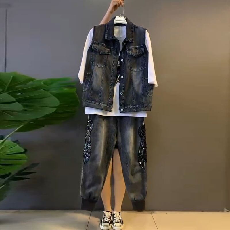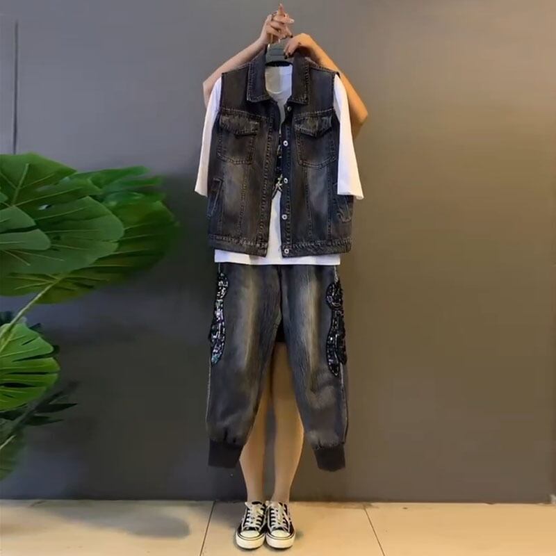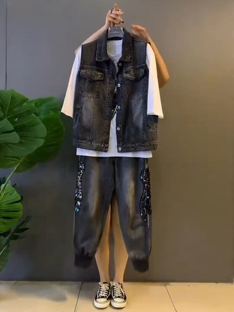 色:ホワイトT+ブラックベスト+ブラックパンツスリーピーススーツ