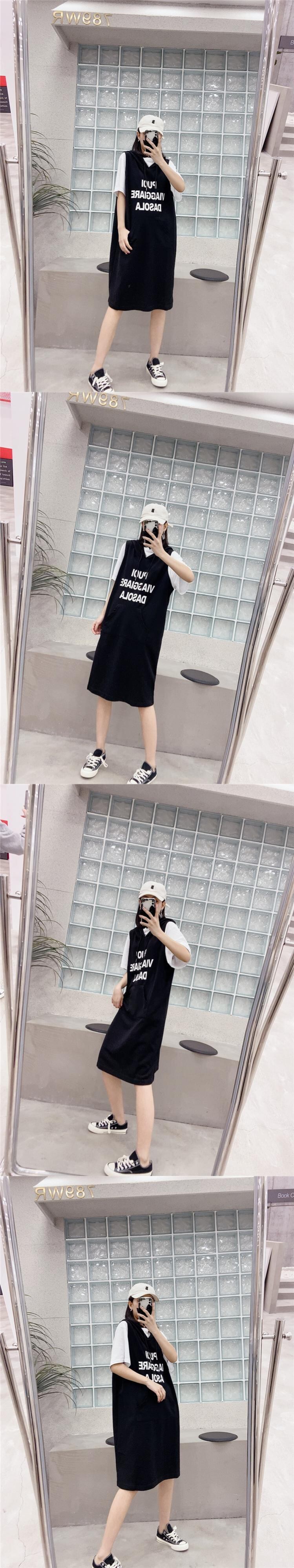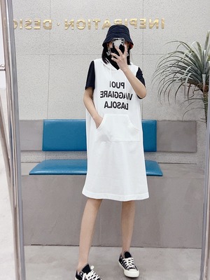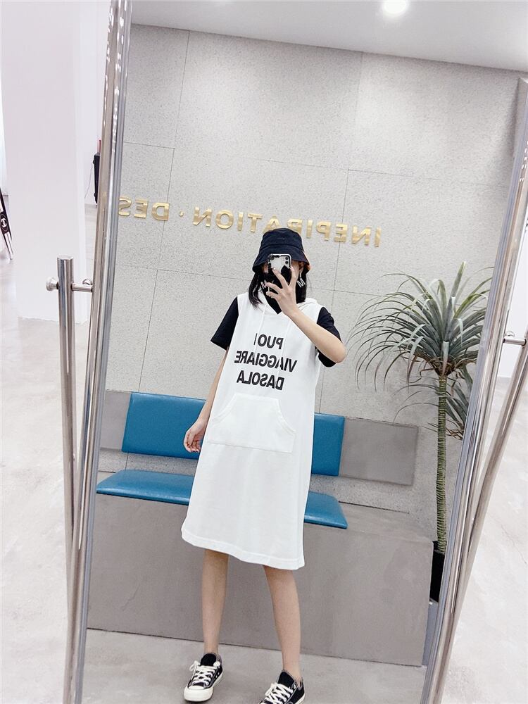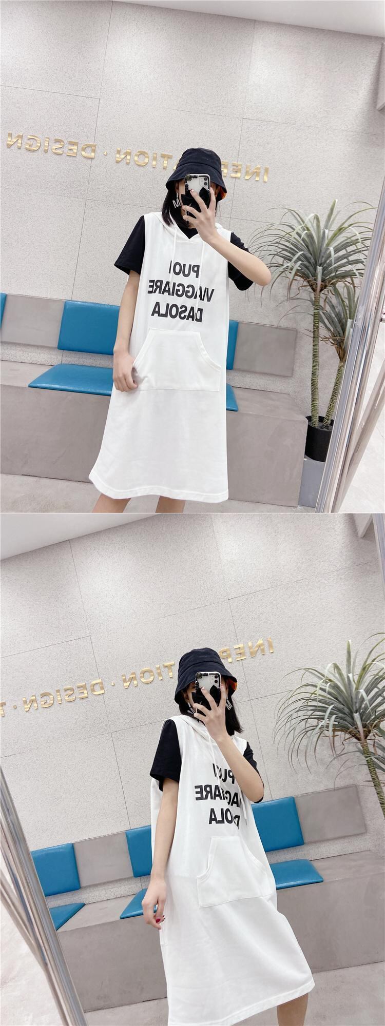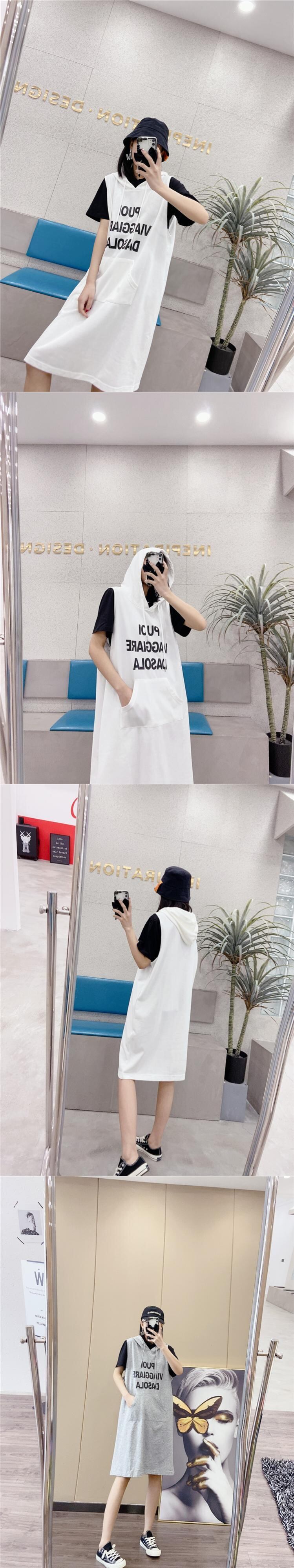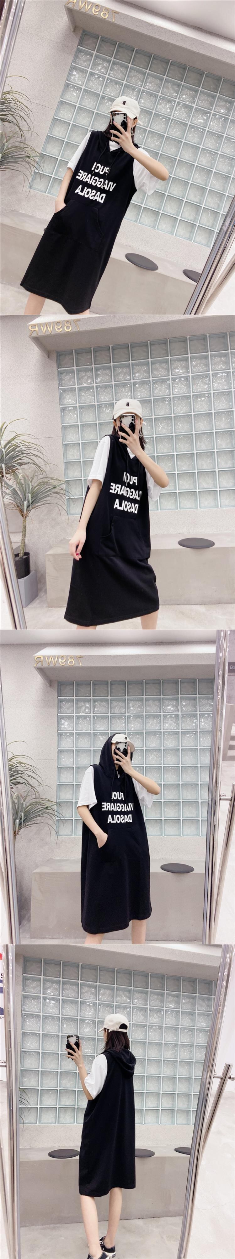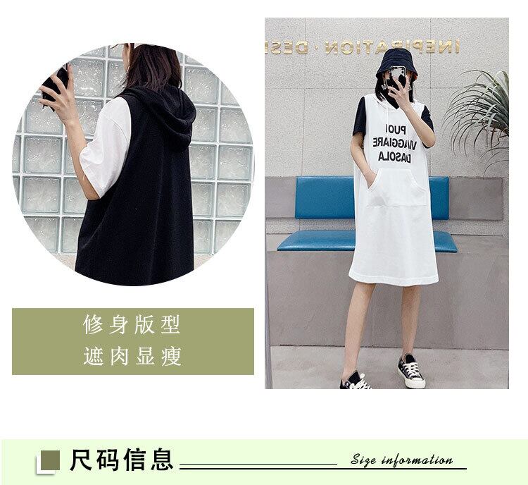 ルーズフードノースリーブドレス プリント柄ポケットセーター スカート 大きめサイズ ミックスインファッション79375894370
