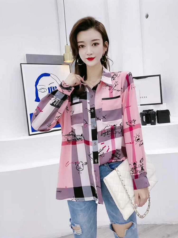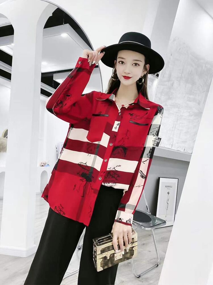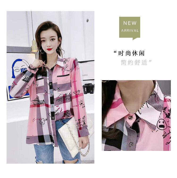 シャツ 格子柄スプリングトップス ロング 大きめサイズ 春物 ミックスインファッション2796261042