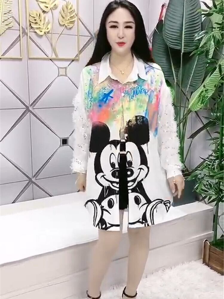 スプリングスタイルカラーシャツ ロング 大きめサイズ 春物 ミックスインファッション23002846234