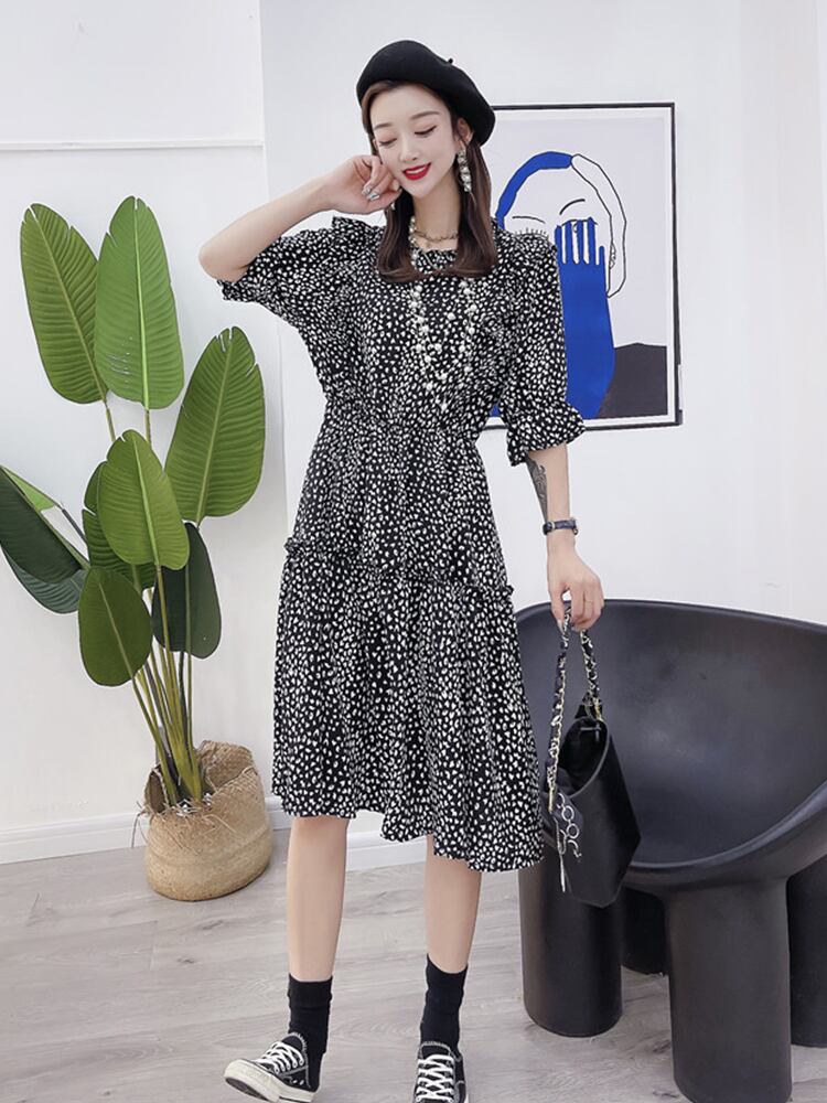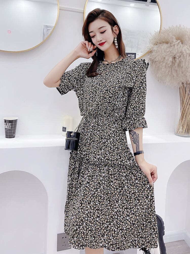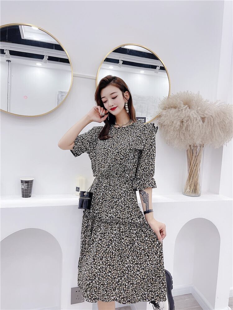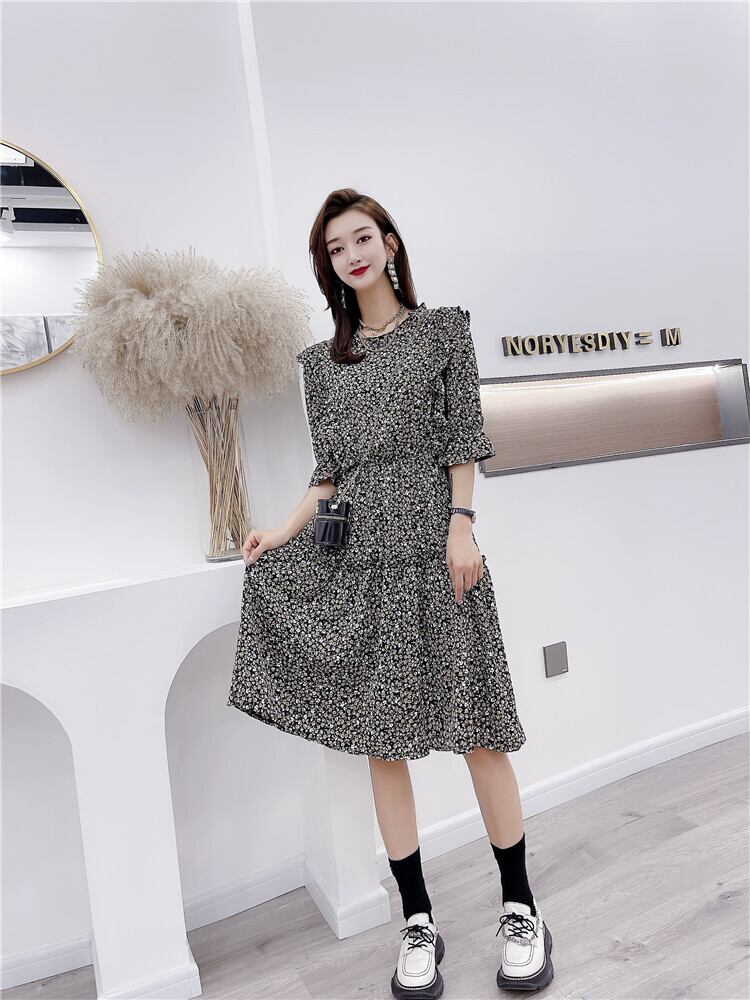フローラルFlowerデザイン ドレス スプリングスタイル薄手ウェストスカート 大きめサイズ 春物 花柄 フラワーデザイン ミックスインファッション44613601538