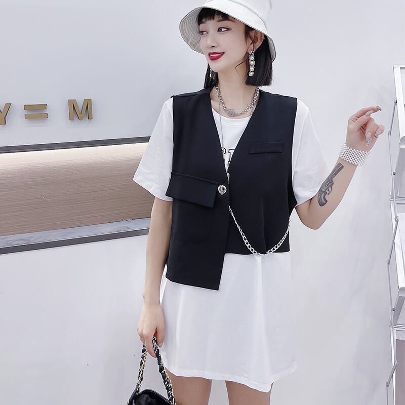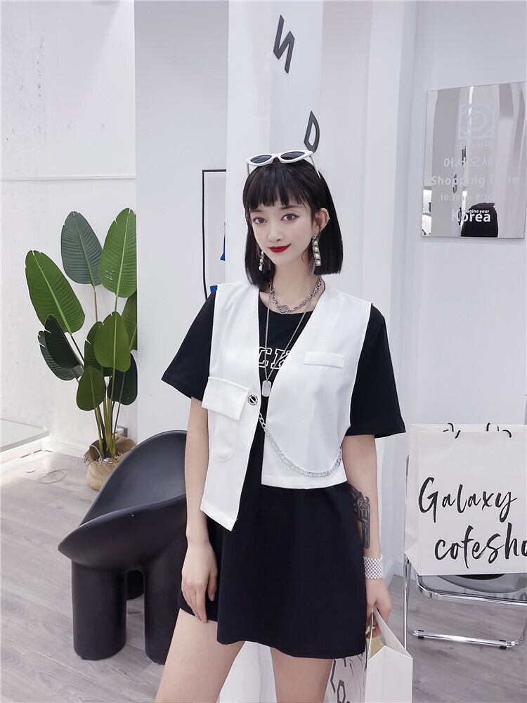 色:ホワイトTブラックベストツーピーススーツ,ブラックTホワイトベストツーピーススーツ
