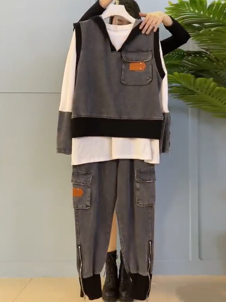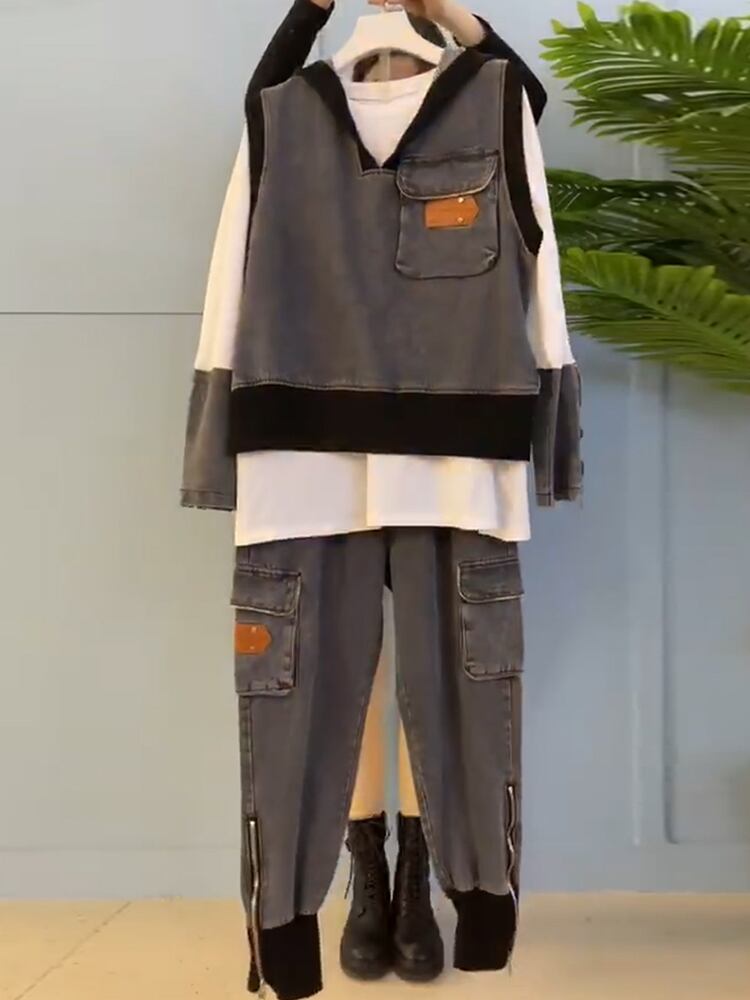 色:ブルー+ホワイトTスリーピーススーツ,黒+白Tスリーピーススーツ